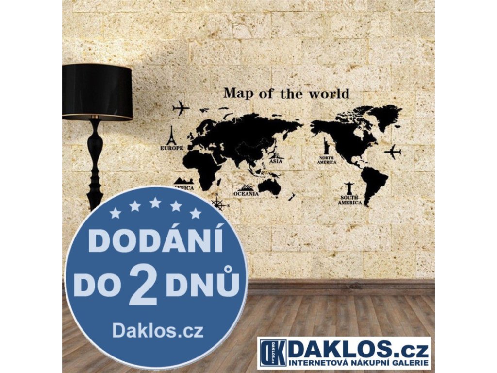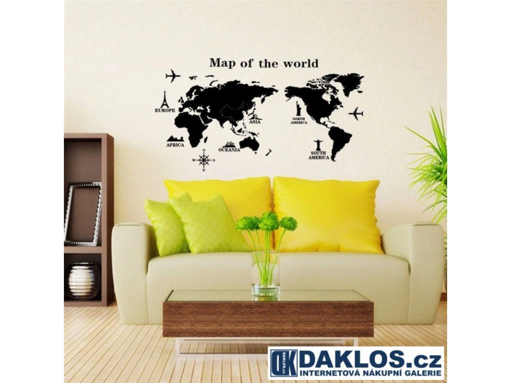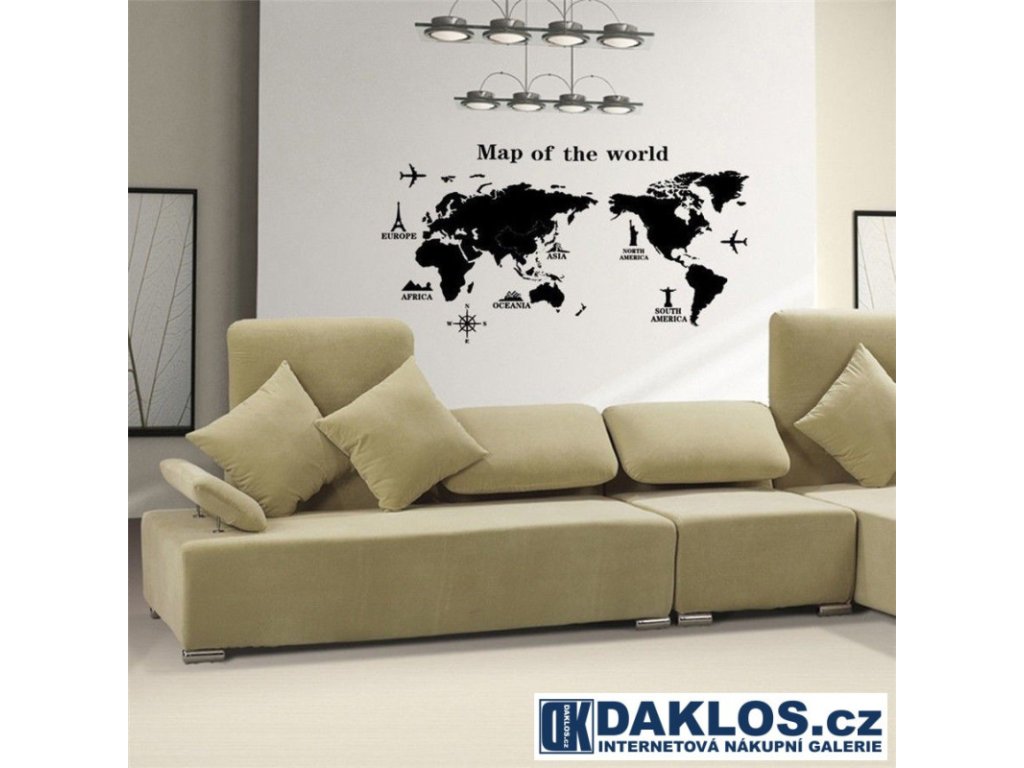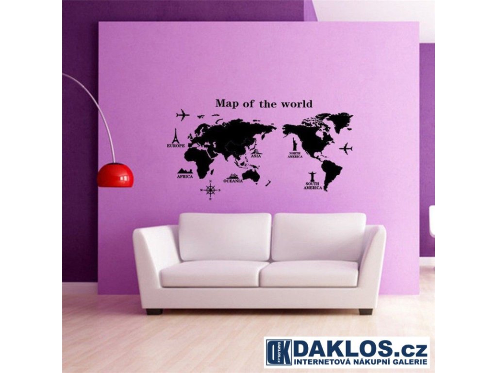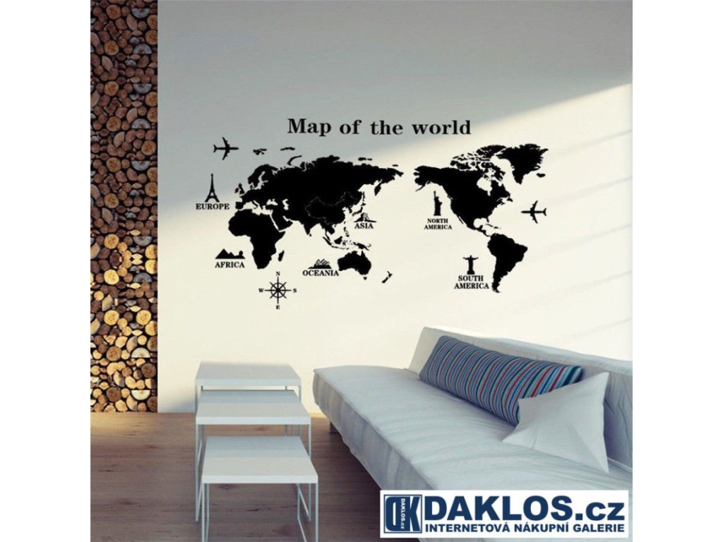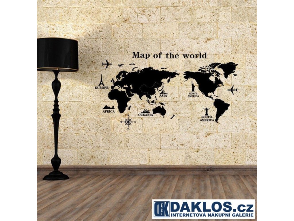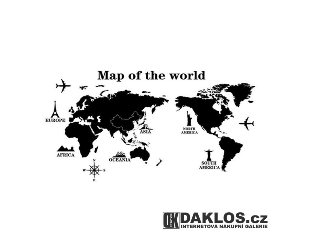 Nálepka / Samolepka na stěnu svět / světadíly s popisky / obrázek - černá