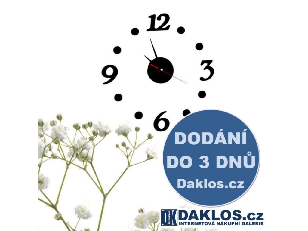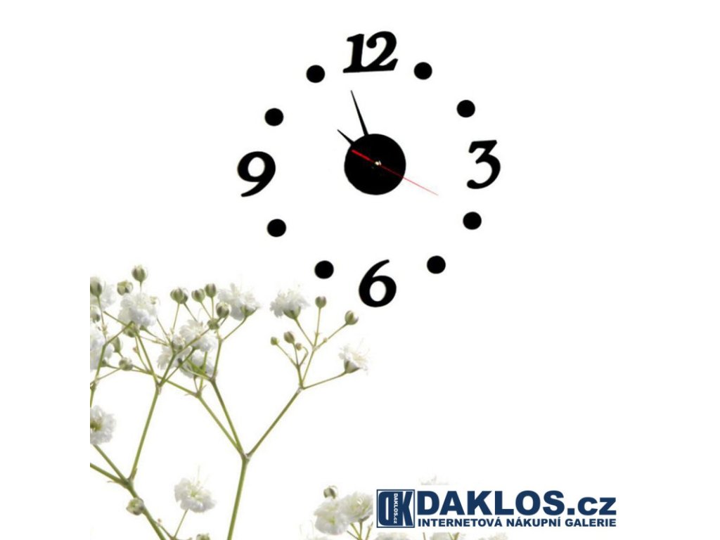 Nalepovací 3D nástěnné analogové hodiny - číslice a body - černé