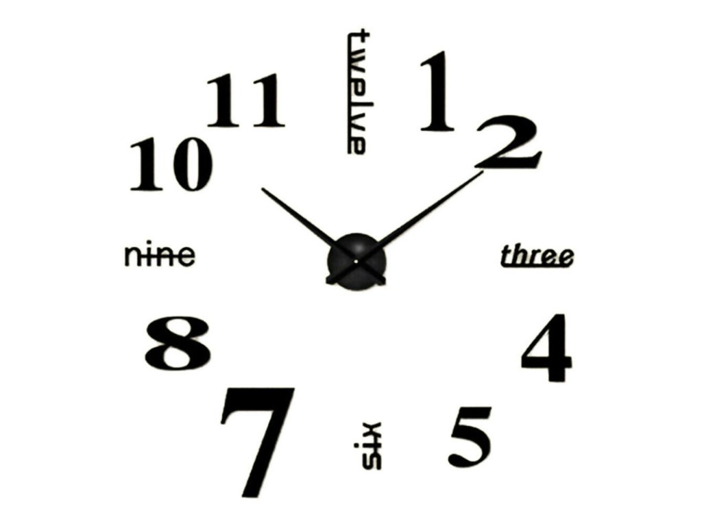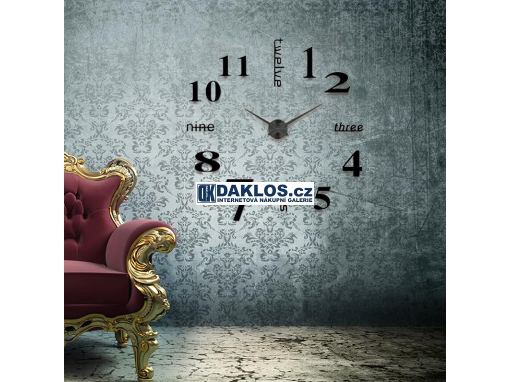 Nalepovací 3D nástěnné analogové hodiny - číslice a slova - černé