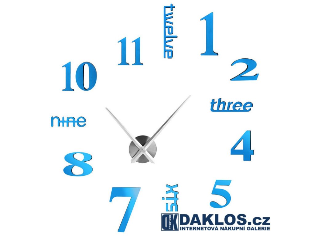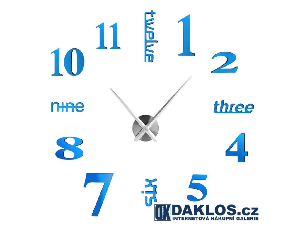 Nalepovací 3D nástěnné analogové hodiny - číslice a slova - modré
