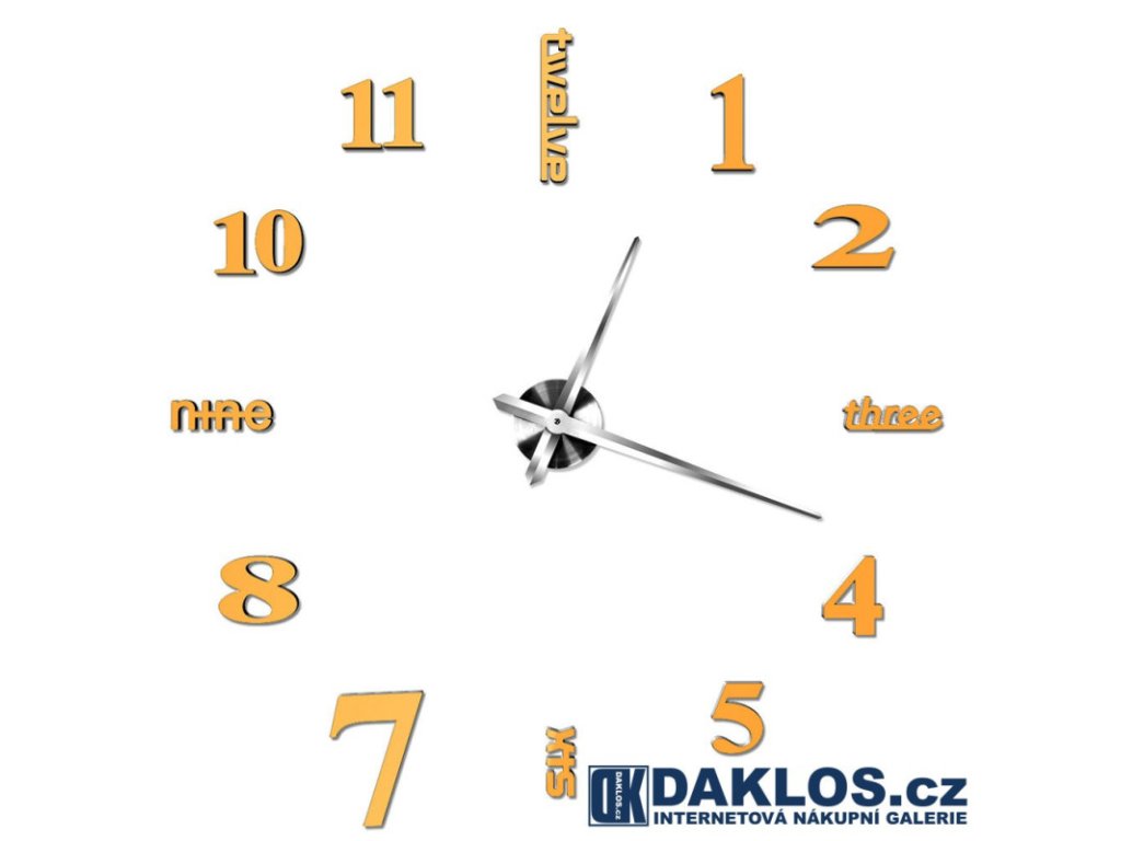 Nalepovací 3D nástěnné analogové hodiny - číslice a slova - zlaté