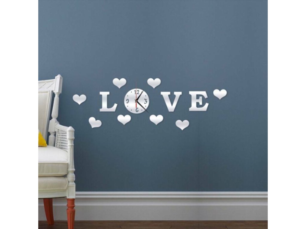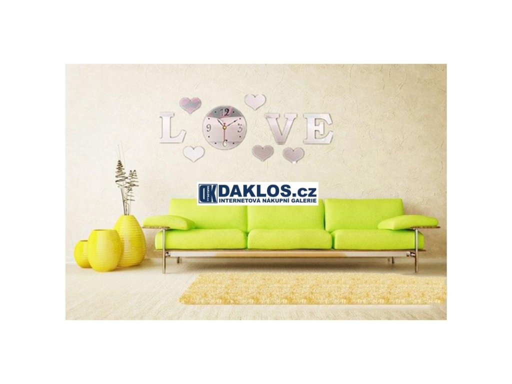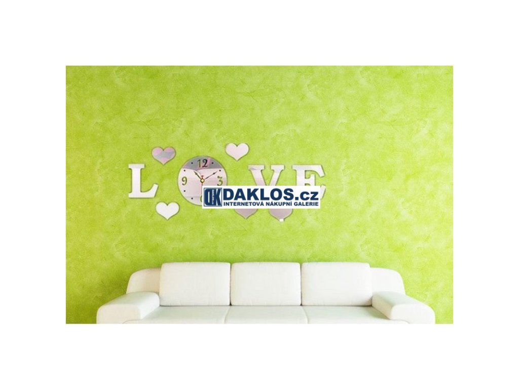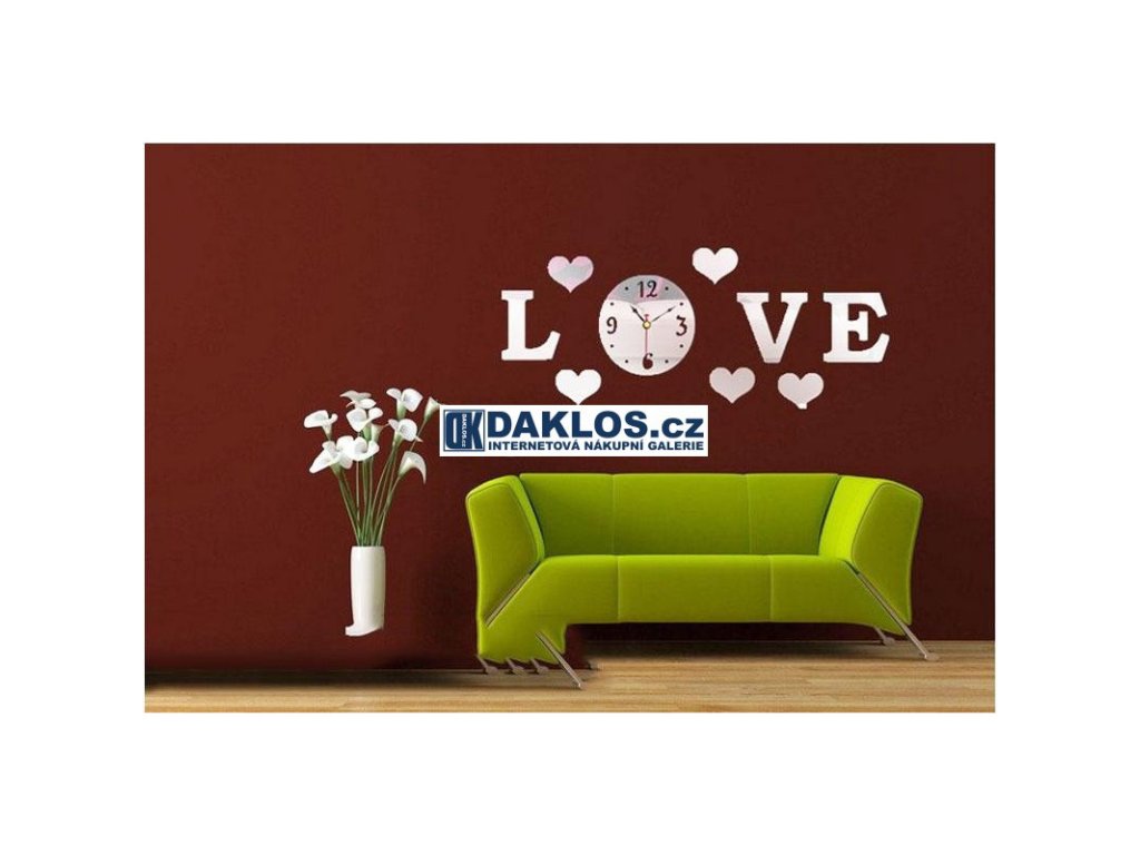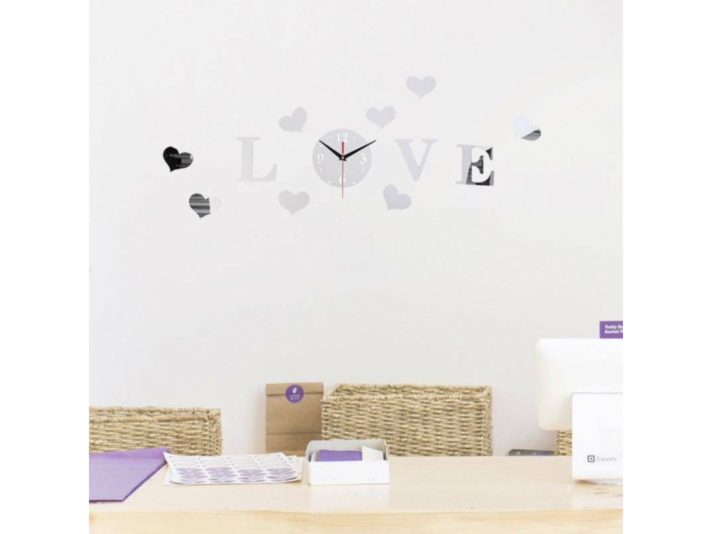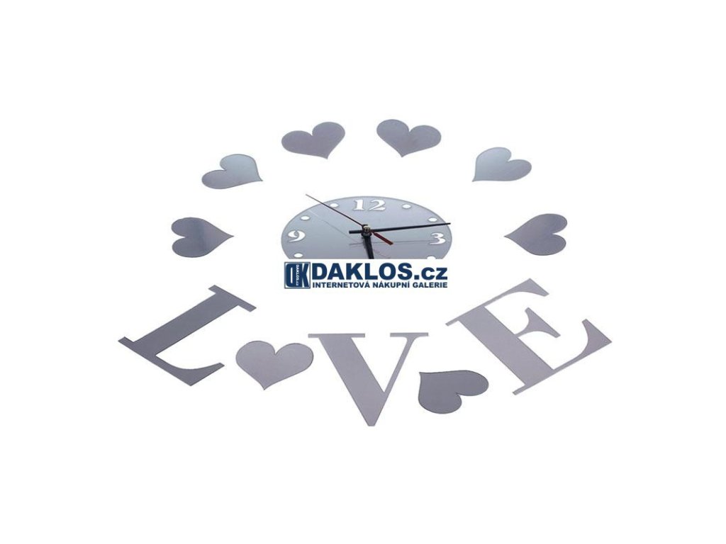 Nalepovací 3D nástěnné analogové hodiny - LOVE - stříbrné