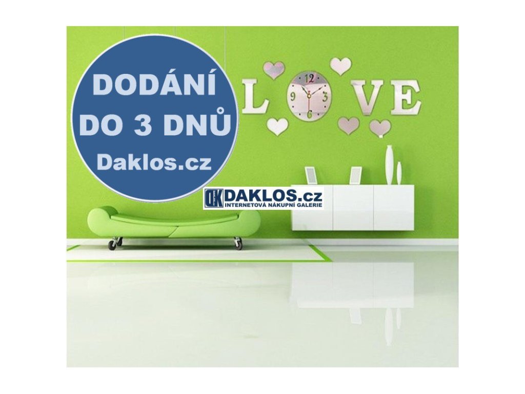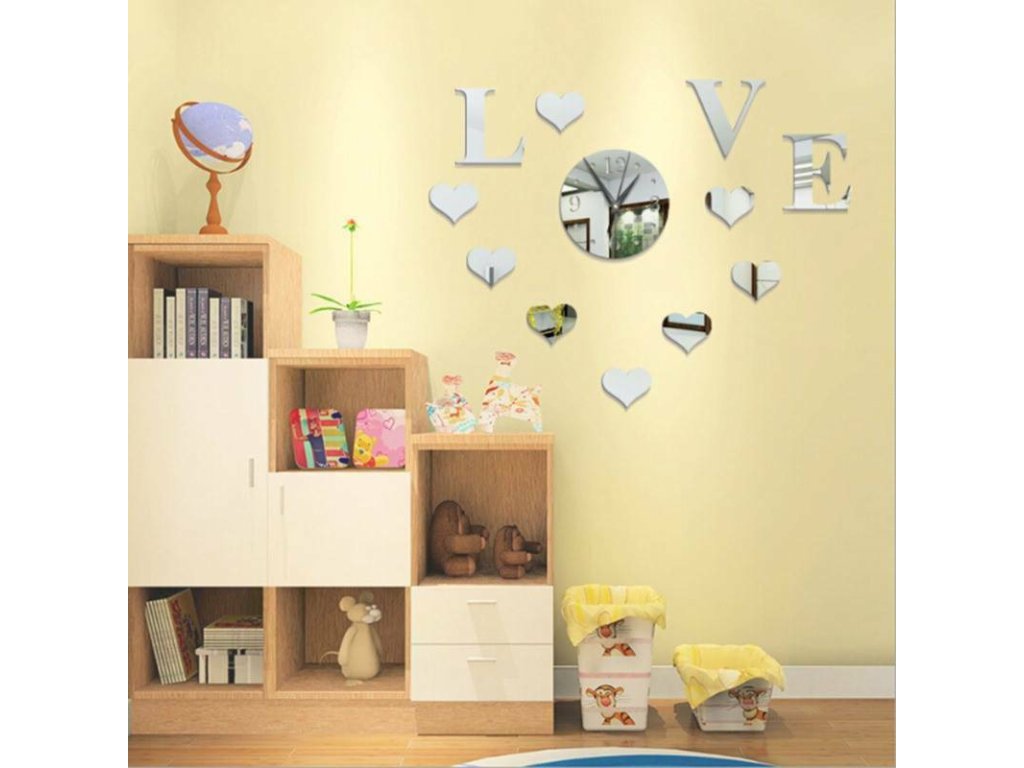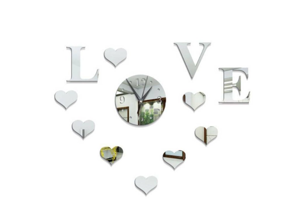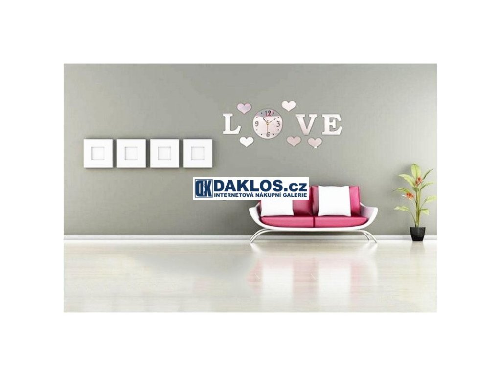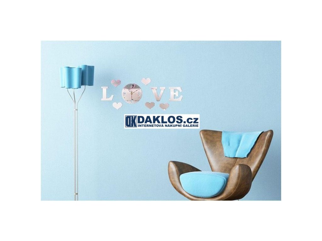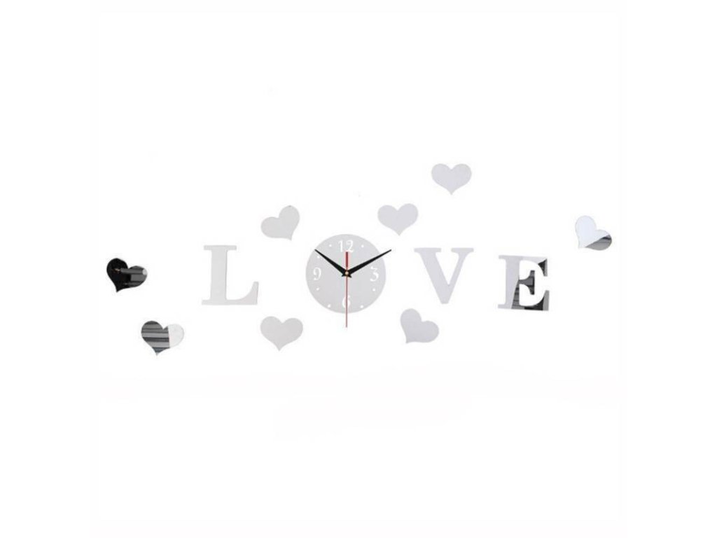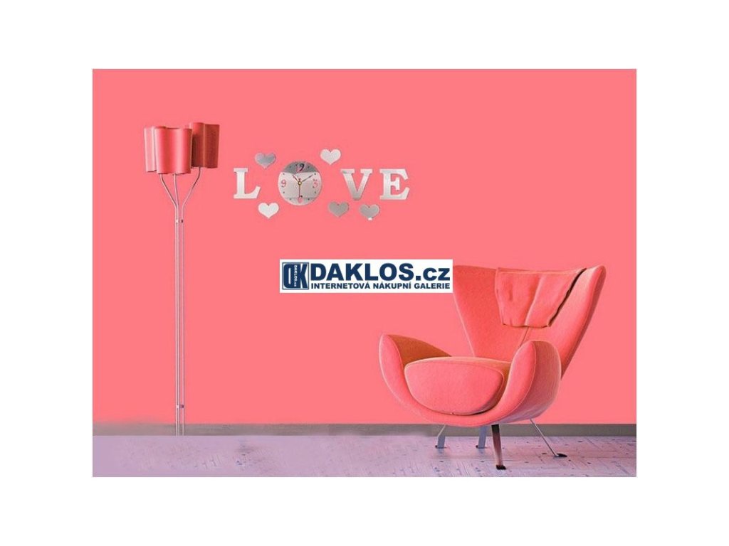 Nalepovací 3D nástěnné analogové hodiny - LOVE - stříbrné