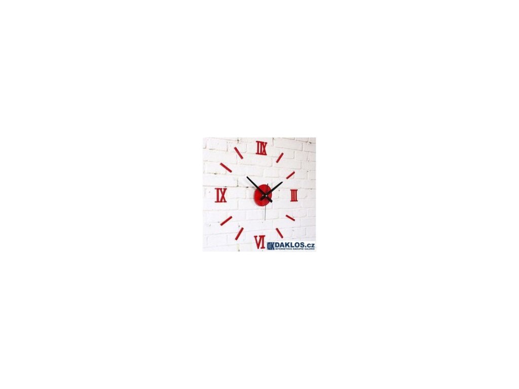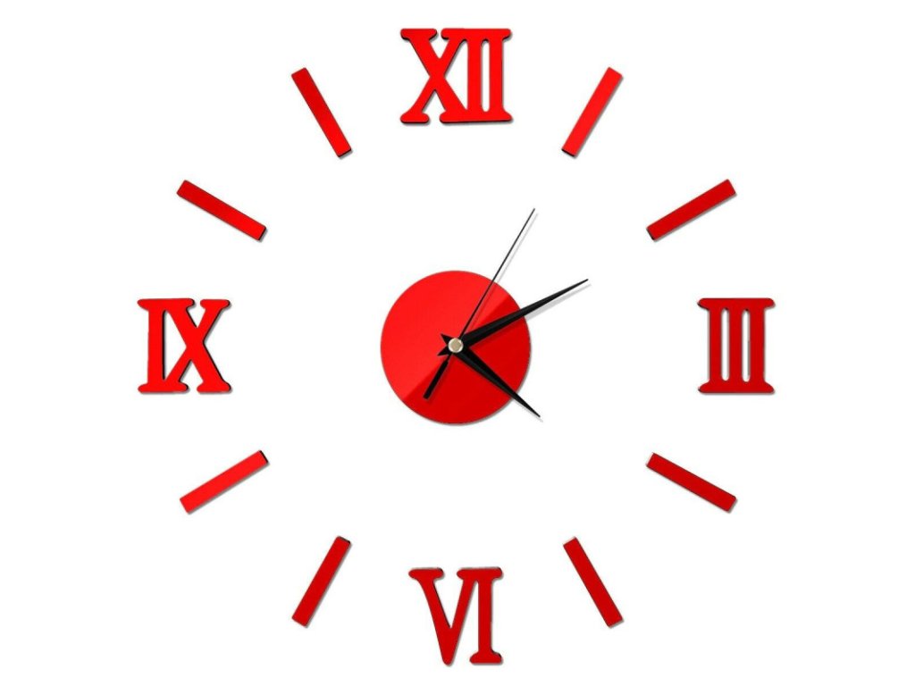 Nalepovací 3D nástěnné analogové hodiny - římské číslice - červené