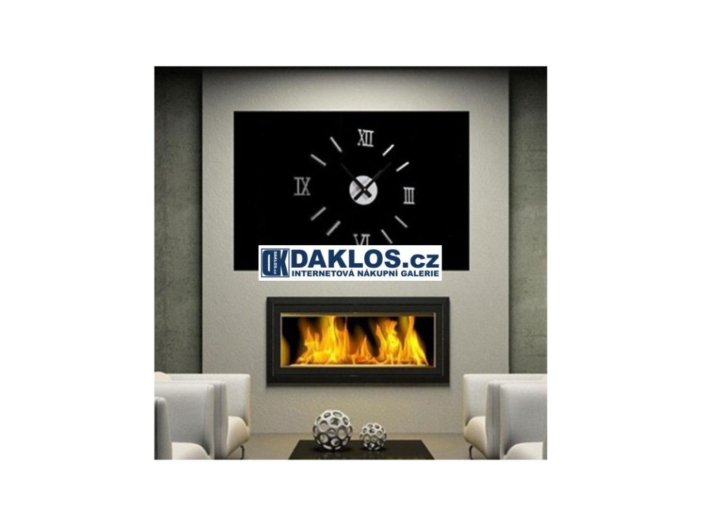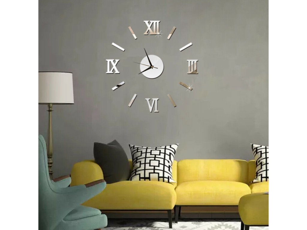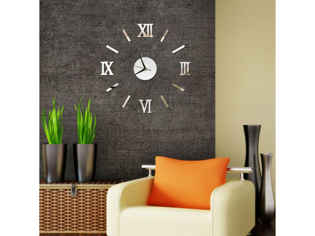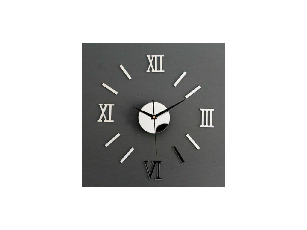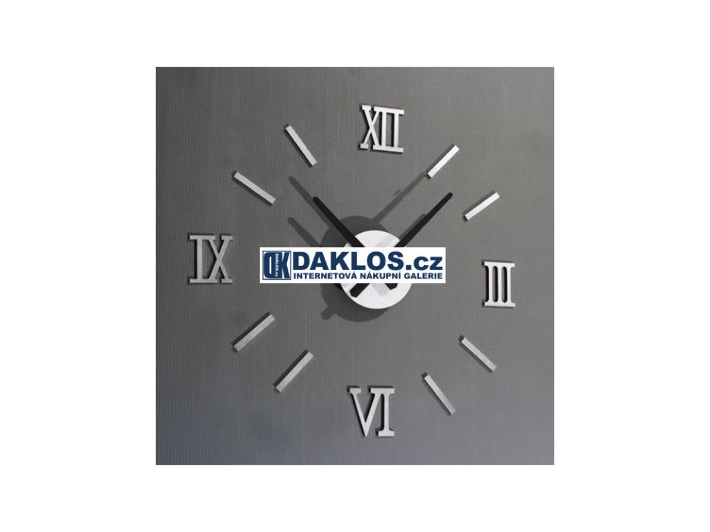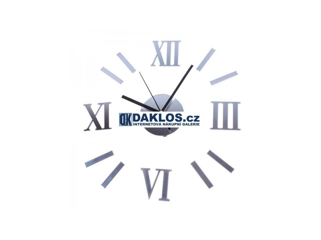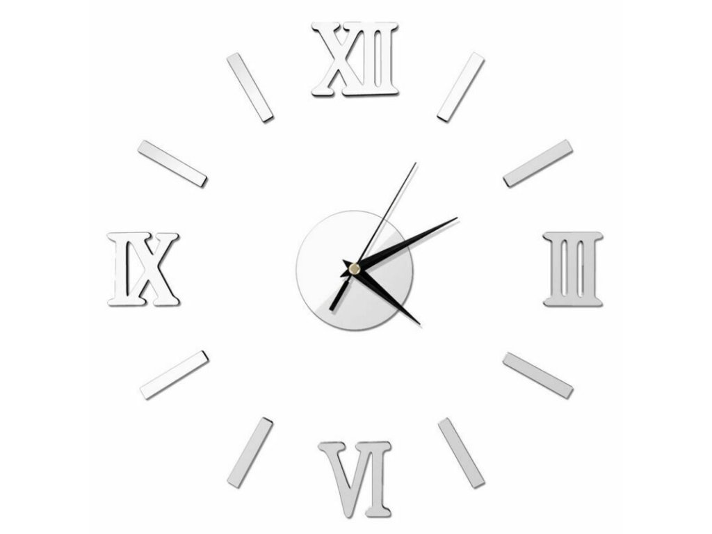 Nalepovací 3D nástěnné analogové hodiny - římské číslice - stříbrné