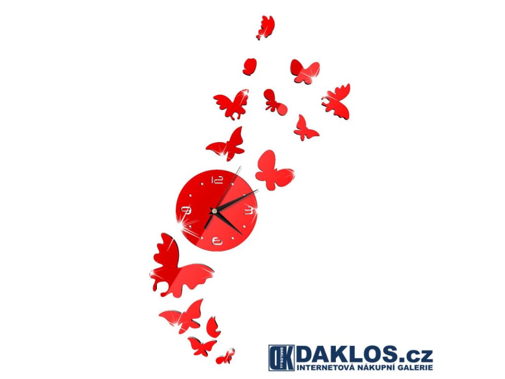 Tyto nalepovací nástěnné hodiny s motýly můžete mít v černé, stříbrné, červené nebo zlaté barvě. Sami si navrhněte tvar těchto nástěnných hodin. Podle Vaší fantazie můžete poskládat jednotlivé díly na zeď a vytvořit tak unikátní umělecké dílo.