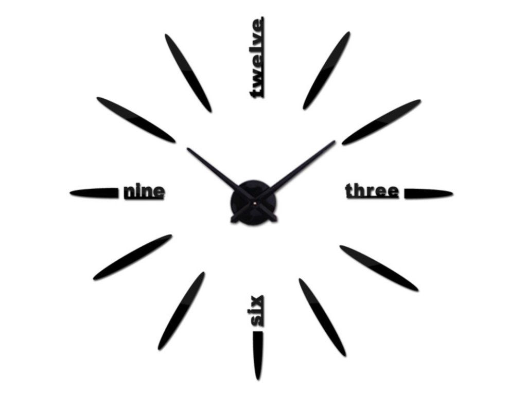 Nalepovací 3D nástěnné analogové hodiny - slova - černé
