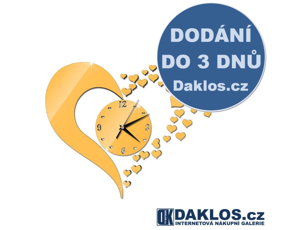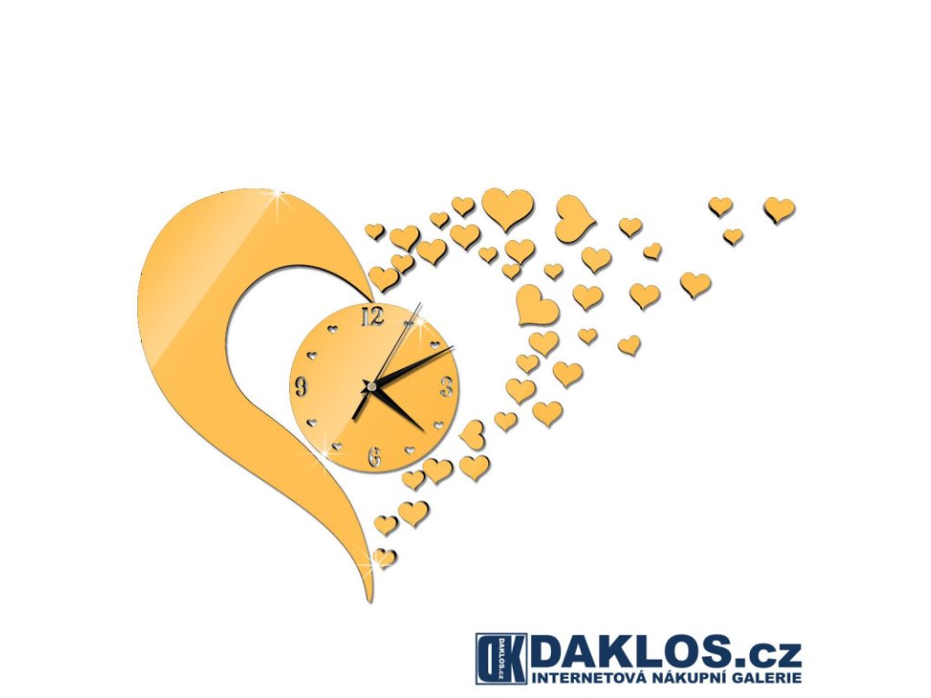 Nalepovací 3D nástěnné analogové hodiny - srdce / srdíčka - zlaté