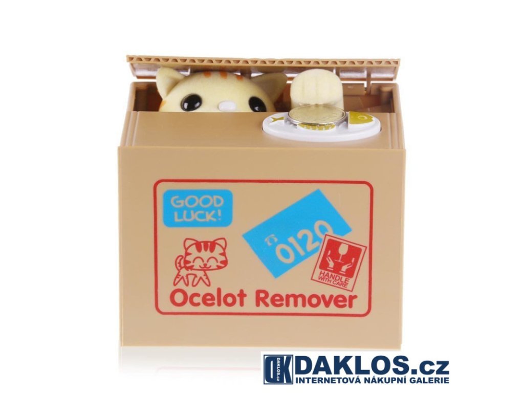 Ocelot / žlutá kočka v akci - kasička - pokladnička - zloděj mincí