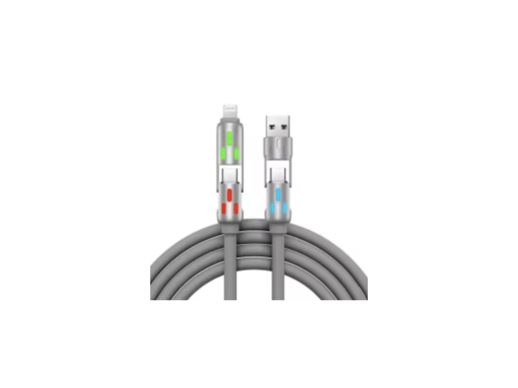Odolný LED multifunkční 91cm kabel 4 v 1, USB, USB-C, Lightning - šedý