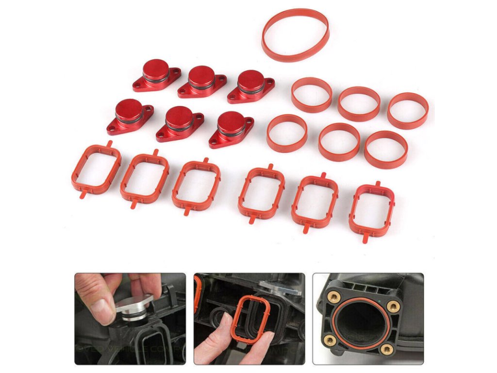 Opravná sada vířivé klapky sání 22 mm BMW M47 M57 E39 E38 E46 E90 E91 E87 E83 E60 E61 E53 E70 E71 E65 včetně těsnění - červené