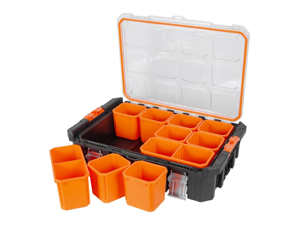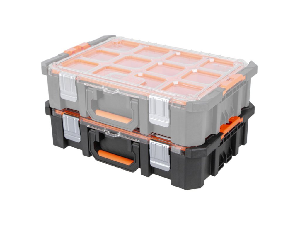 Unikátní vlastností tohoto organizéru je možnost kombinace s dalšími doporučenými kufry na nářadí.