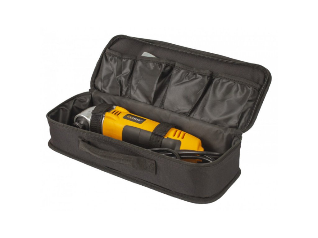 Multifunkční oscilační bruska o výkonu 300 W se hodí k rašplování, broušení a seškrabávání menších ploch, ale také k řezání dřevěných materiálů, umělé hmoty, sádrokartonu ale i měkkých kovů.