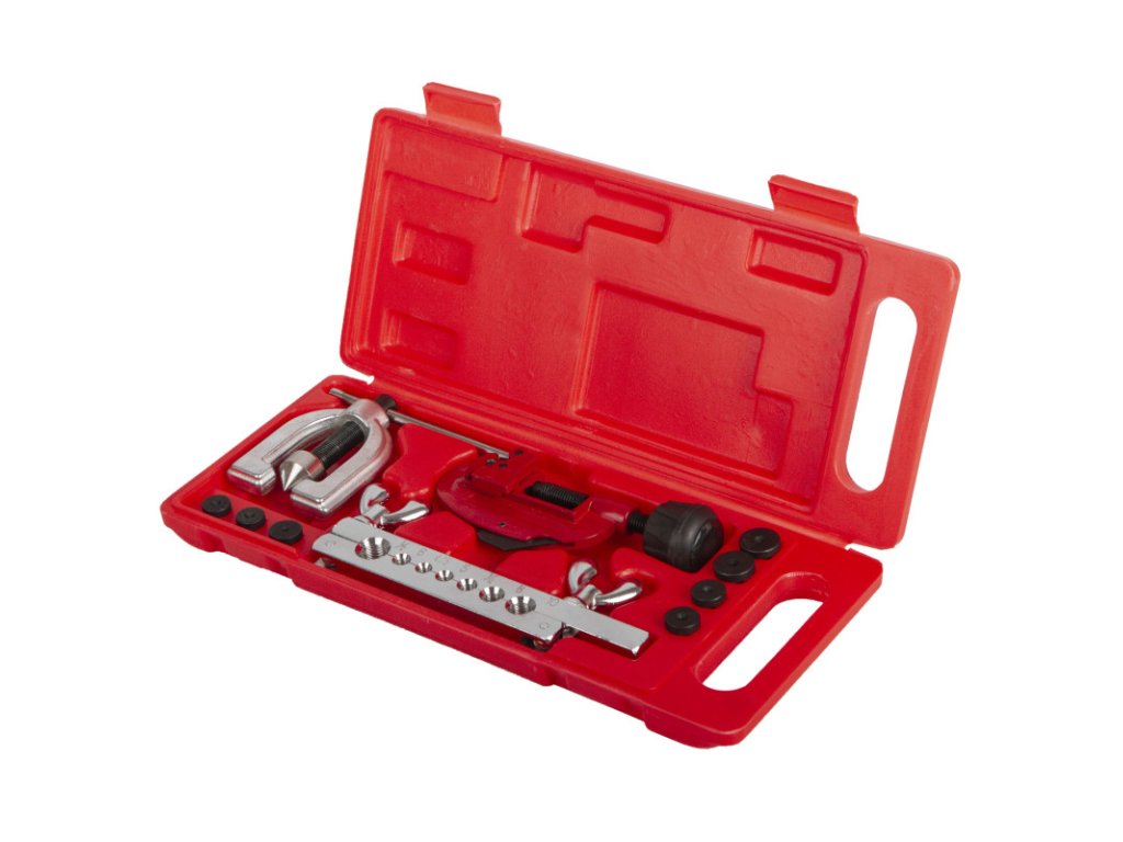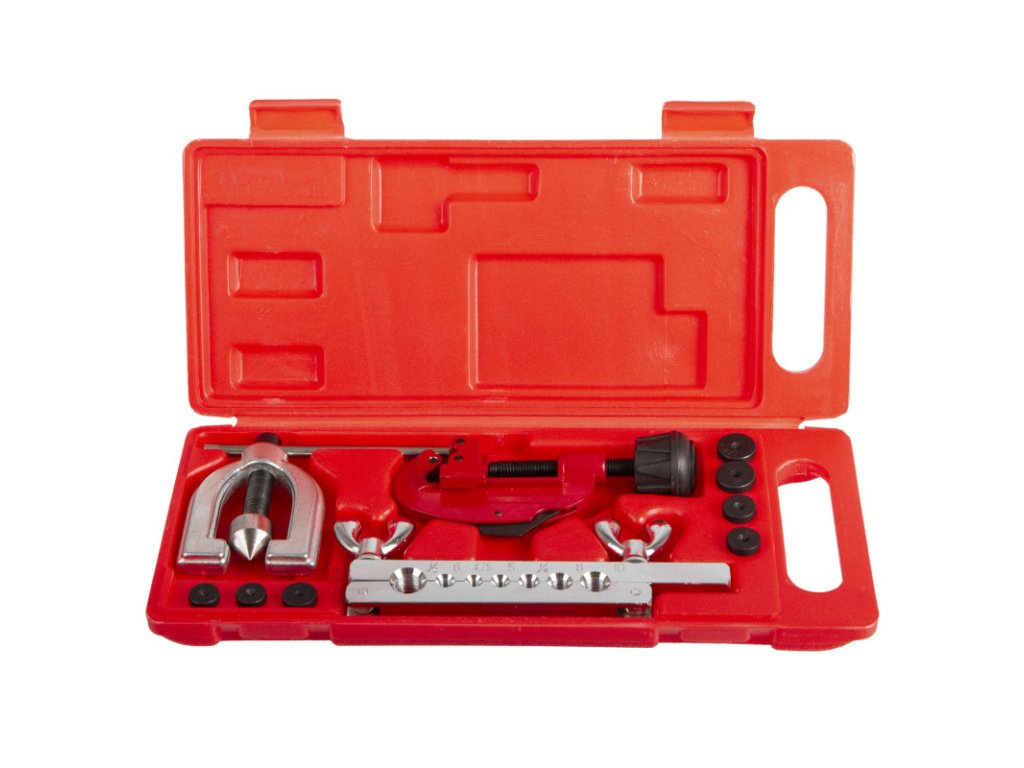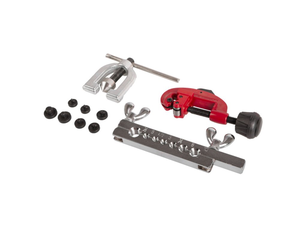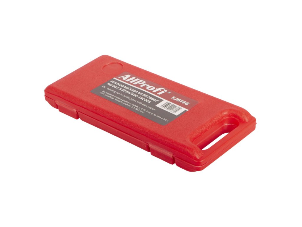 Základní pertlovací sada na měděné brzdové trubky s rozměry: 4,75; 5; 6; 8; 10 mm a 1/4"; 1/2". Souprava je uložena v tvrdém plastovém kufru spolu s řezačkou trubek průměru: 3,3 - 28,7 mm.