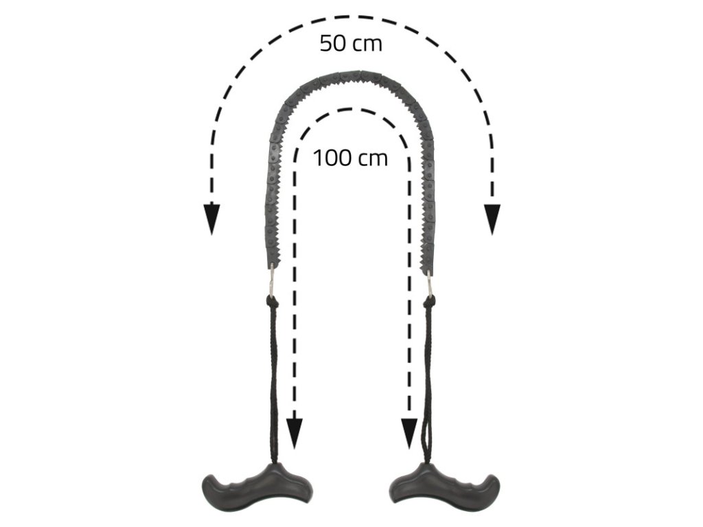 Díky ergonomicky tvarovaným madlům a kvalitnímu ocelovému řetězu lze jednoduše několika tahy uříznout větev i kmen stromu. Délka ozubené části je 50 cm, celková délka pilky od rukojeti k rukojeti je 100 cm.