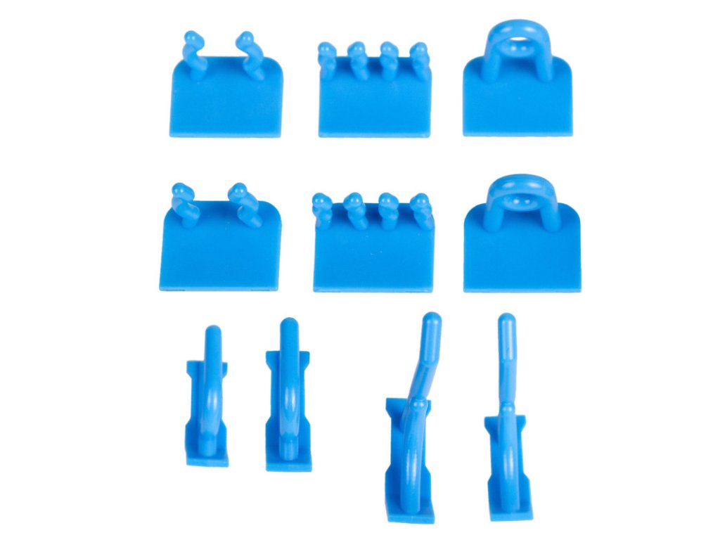 Sada 10 ks plastových háčků určených do děrované desky. Lze je připevnit také na perforované panely sestav dílenského nábytku, dílenské vozíky a policové regály.