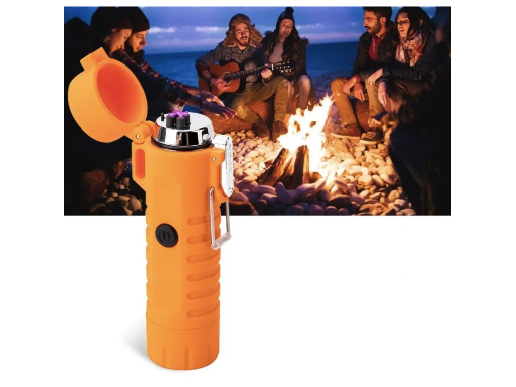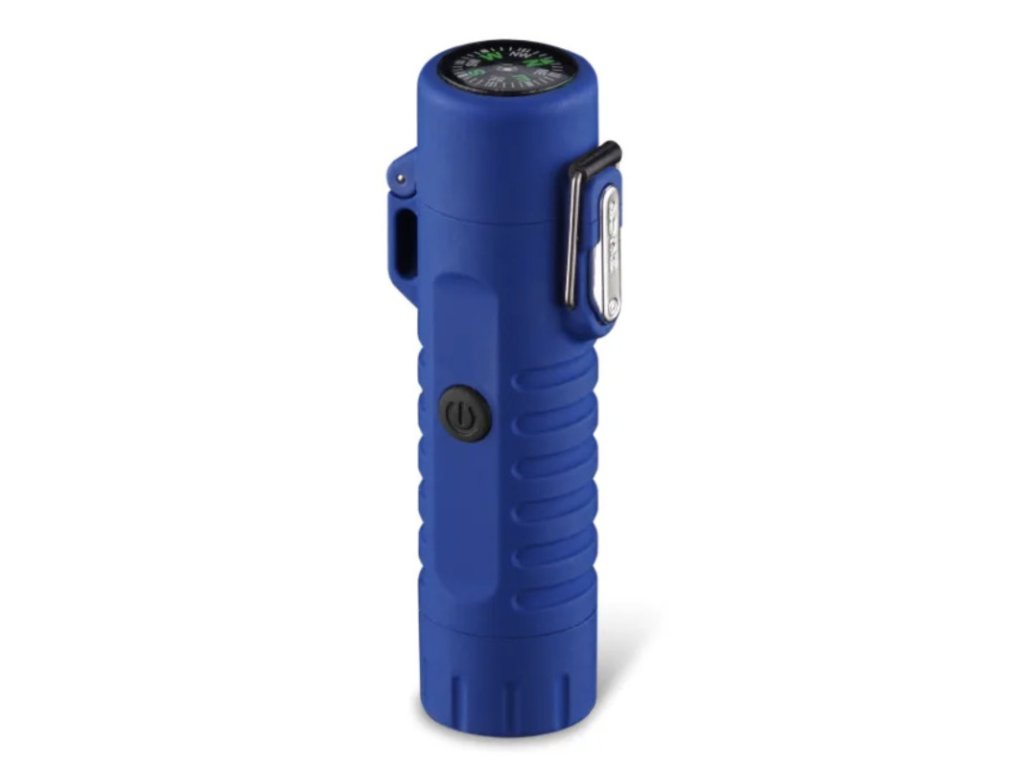 Plazmový nabíjecí voděodolný větruodolný elektrický zapalovač s kompasem a LED světlem v dárkové krabičce - modrý