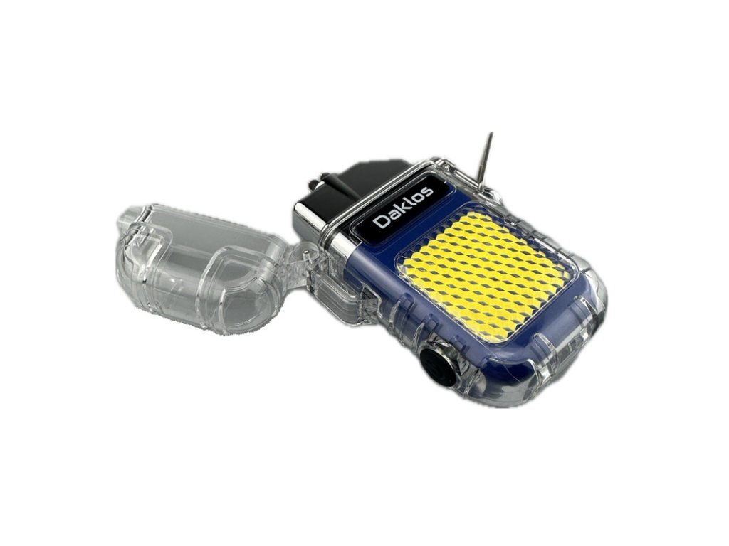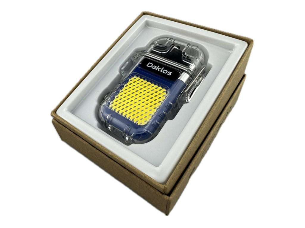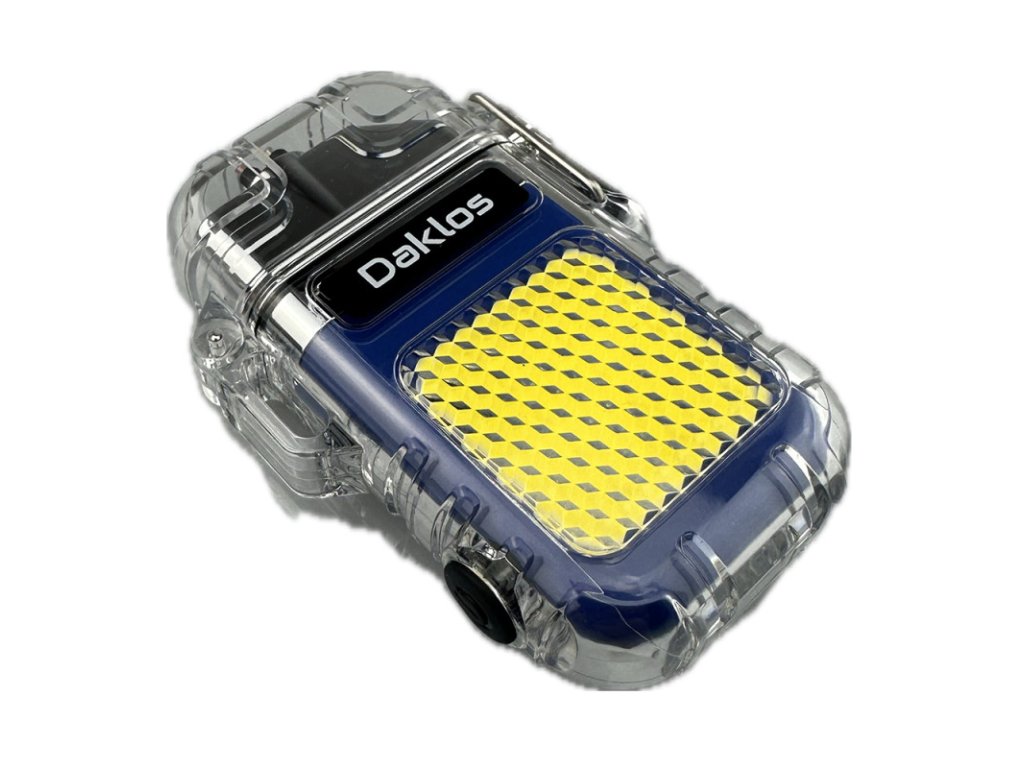 Plazmový nabíjecí voděodolný větruodolný elektrický zapalovač s LED světlem v dárkové krabičce - průhledný modrý