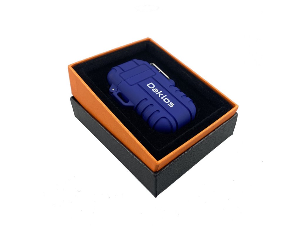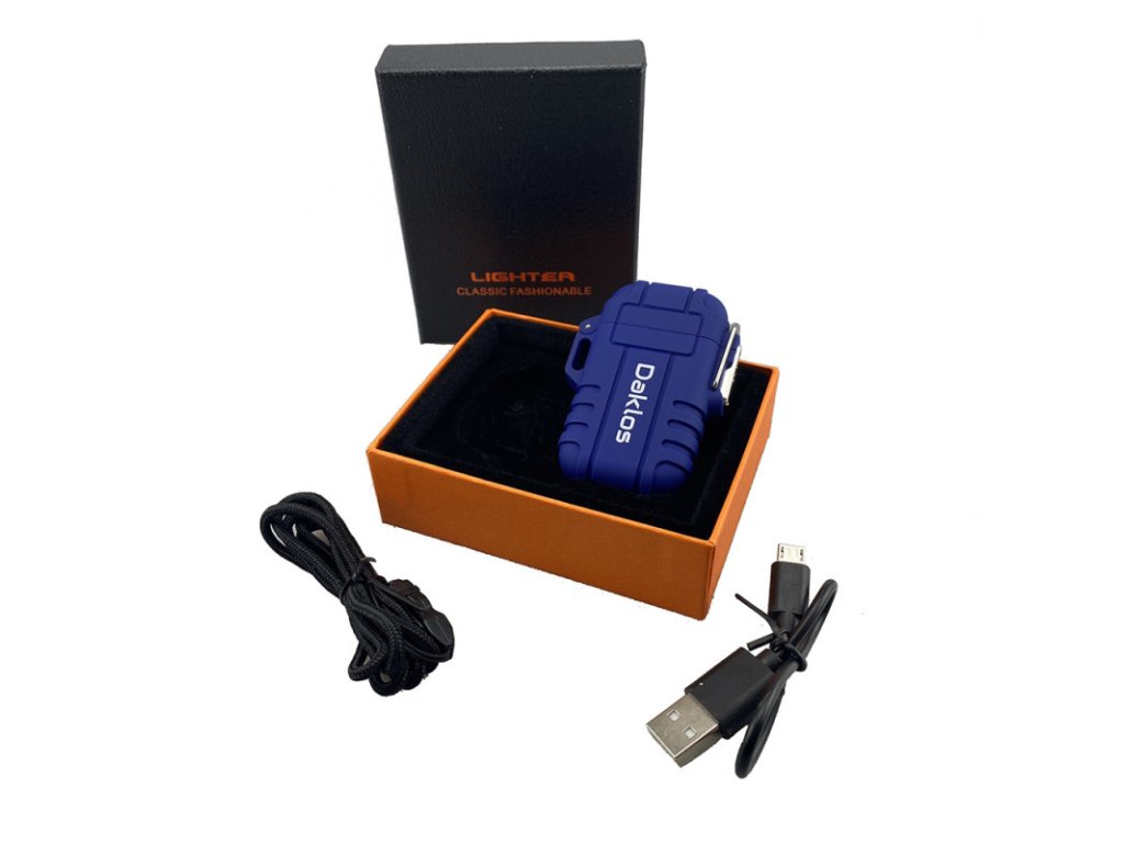 Plazmový nabíjecí voděodolný větruodolný elektrický zapalovač v dárkové krabičce - modrý