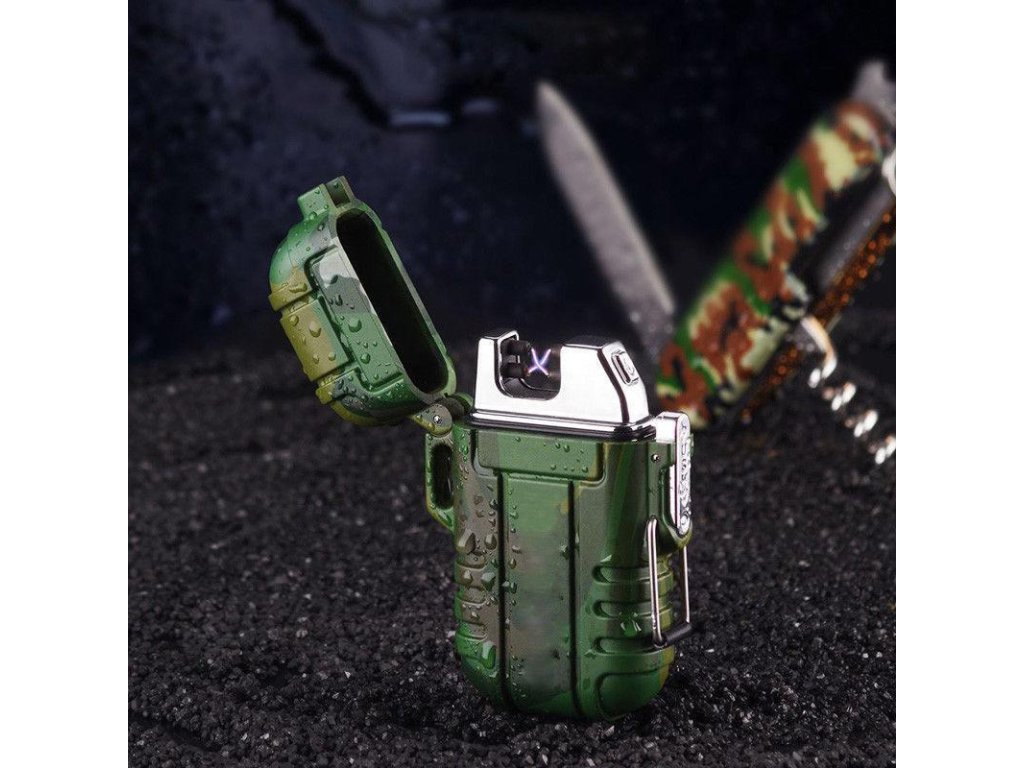 Plazmový nabíjecí voděodolný větruodolný zapalovač v dárkové krabičce - vojenský / armádní