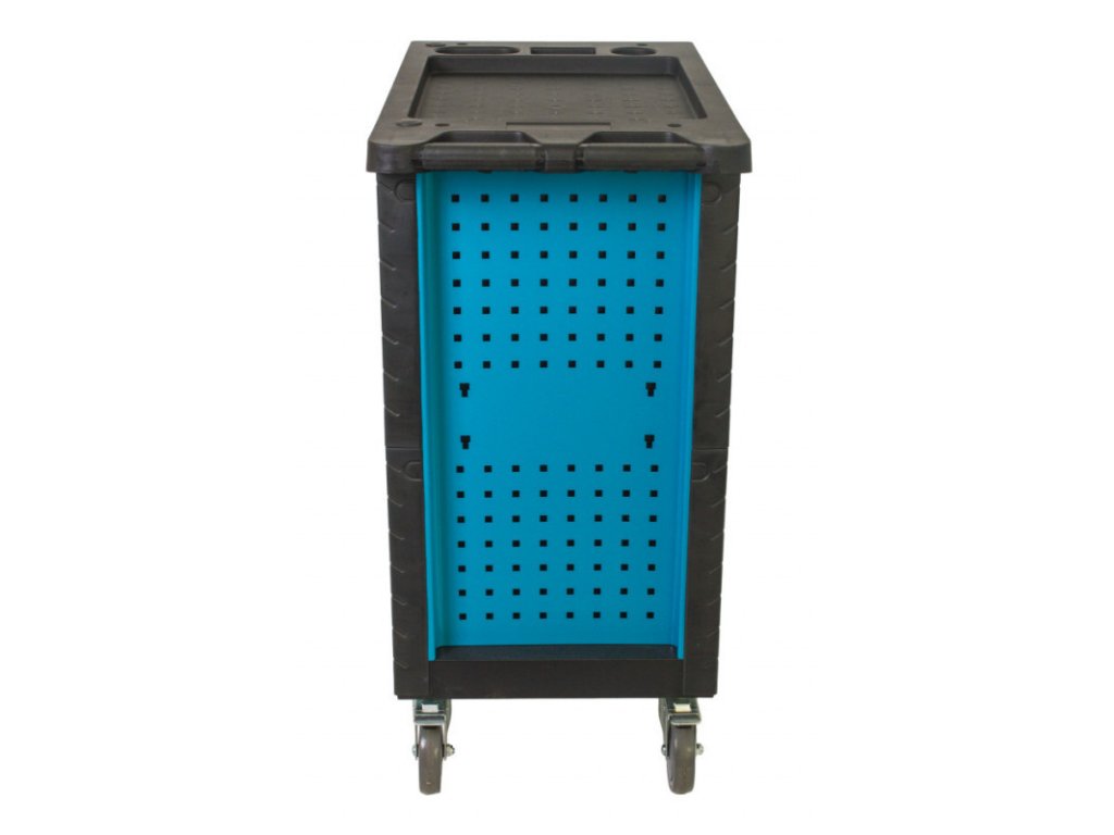 - Dílenský vozík je celokovový a hrany má opláštěny tvrzeným plastem pro zamezení poškození.