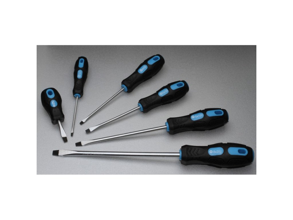 | 6 ks | Šroubováky ploché: 3 x 75; 4 x 100; 5 x 100; 6 x 38; 6 x 150 a 8 x 200 mm. |
