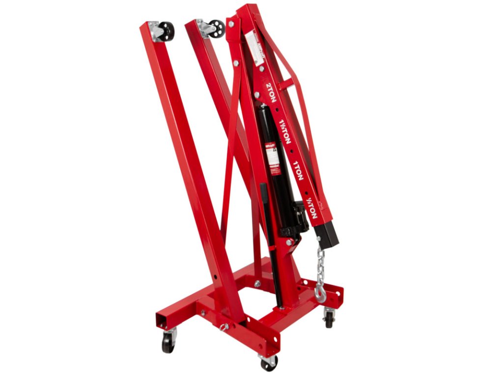 Univerzální dílenský zvedák, ideální pro manipulaci s motory a dalšími těžkými břemeny v autodílnách, garážích nebo průmyslových provozech.