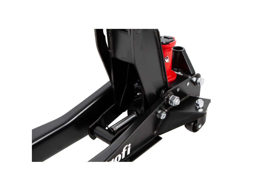 Nízkoprofilový hydraulický zvedák s nosností 3 tuny nabízí stabilitu díky pevné konstrukci, vyrobené ze silného ocelového plechu.