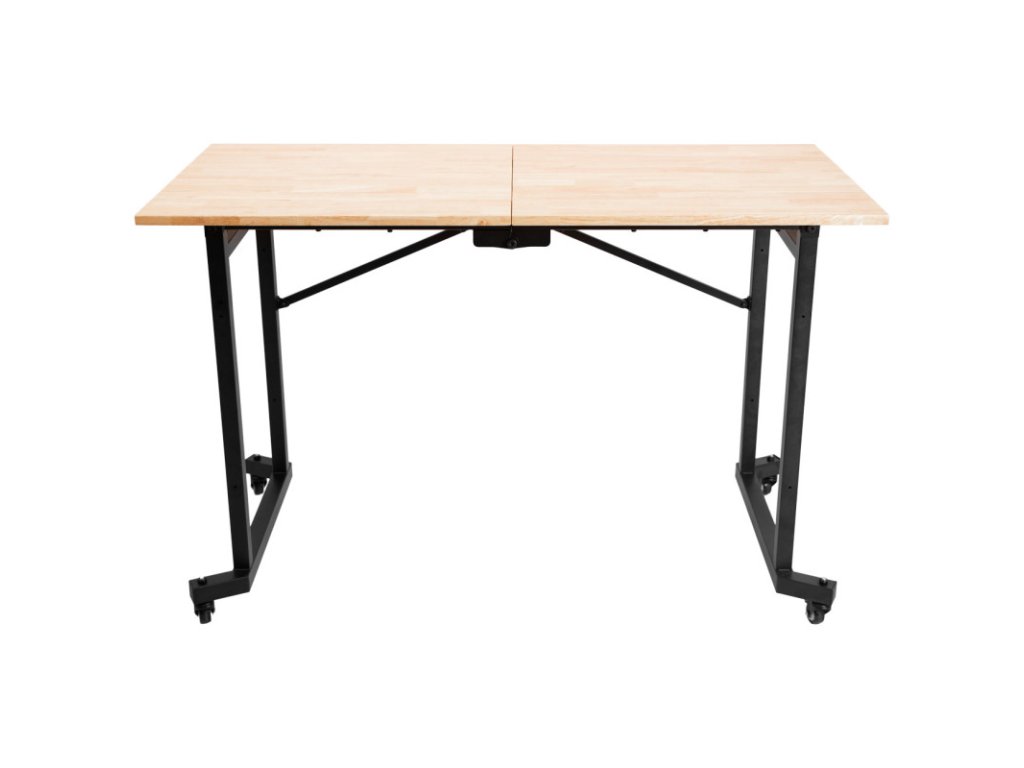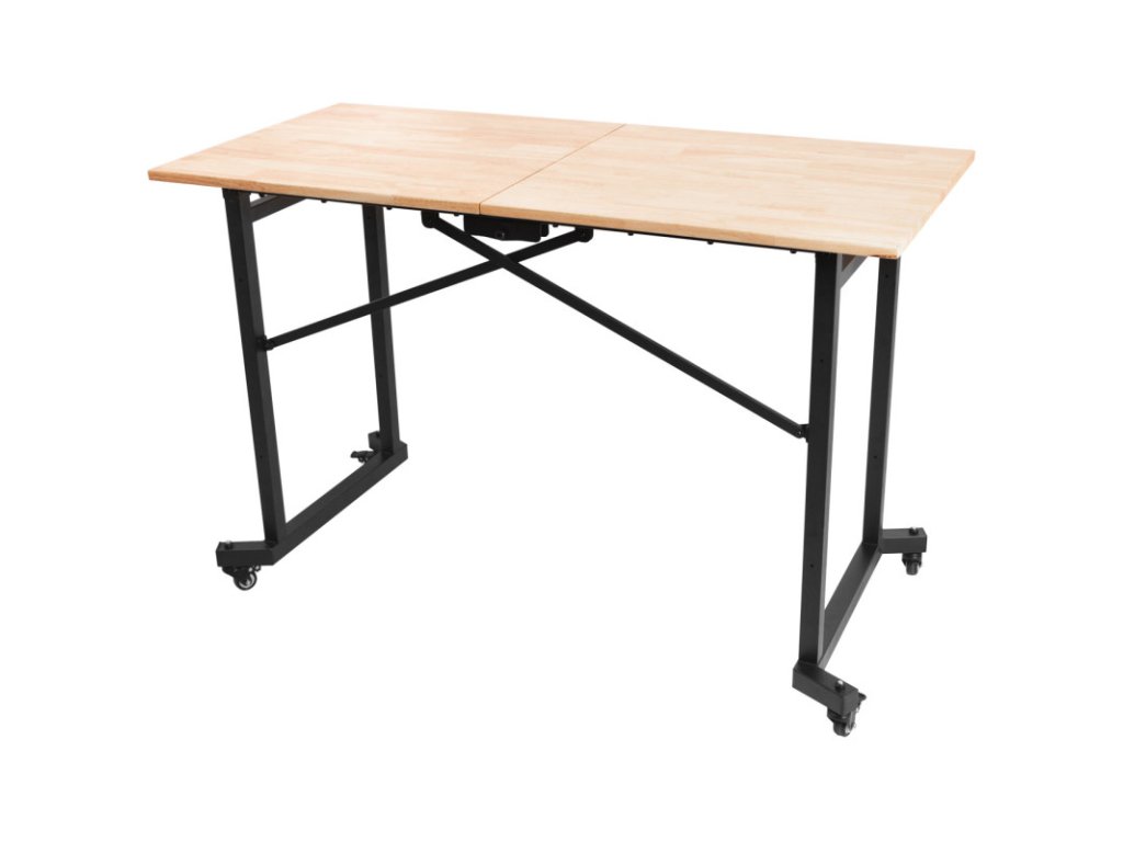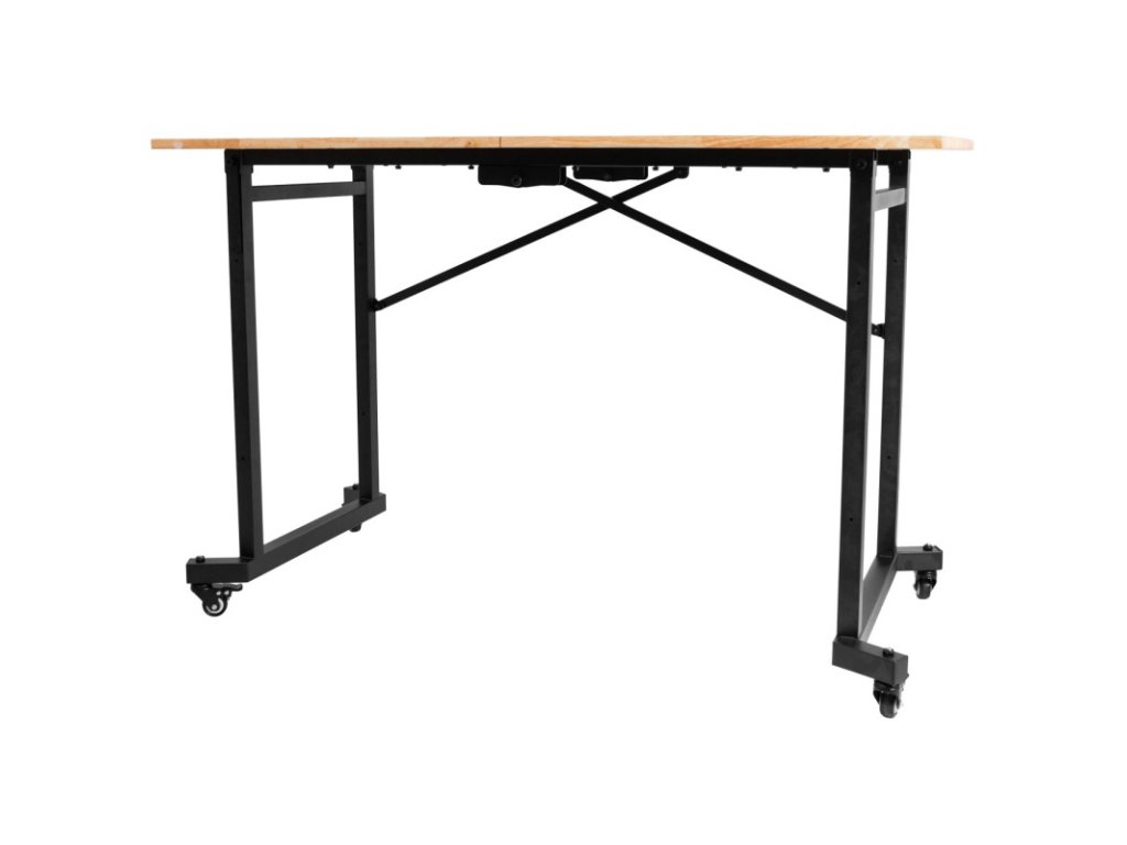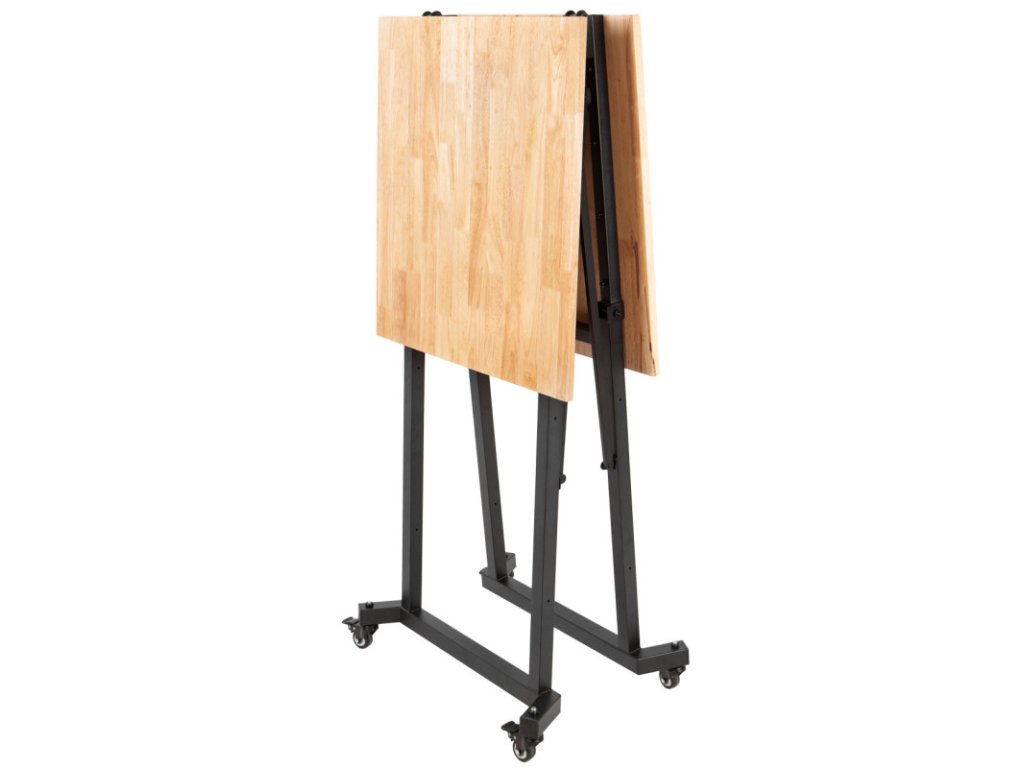 Skládací dílenský stůl určený pro práci v dílnách, garážích a provozech, kde je potřeba flexibilní pracovní plocha s možností rychlého složení a snadného přesunu.