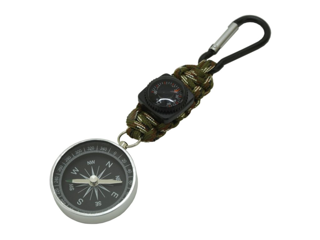 Přívěšek z padákové šňůry s teploměrem a kompasem pro přežití