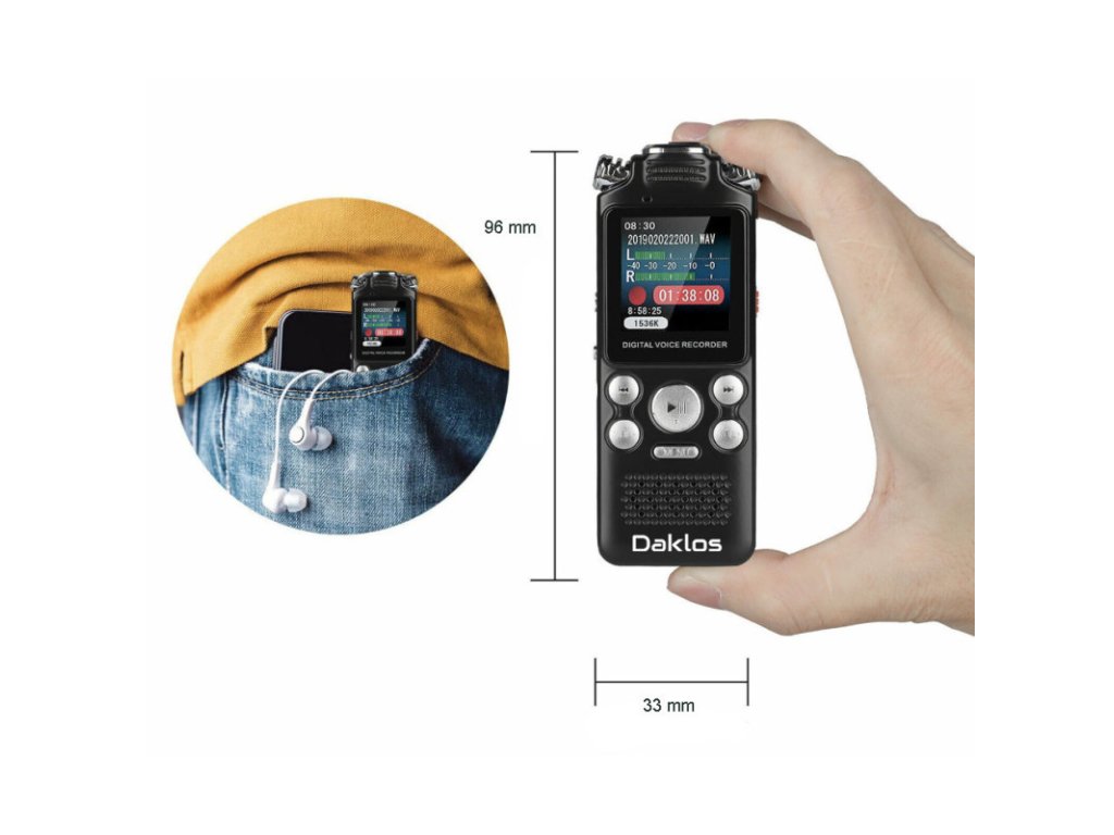 Jeho velikost je ideální do kapsy nebo jakékoliv tašky. Společně s diktafonem obdržíte i sluchátka a micro USB kabel pro nabíjení. Diktafon je tak použitelný i jako MP3 přehrávač.