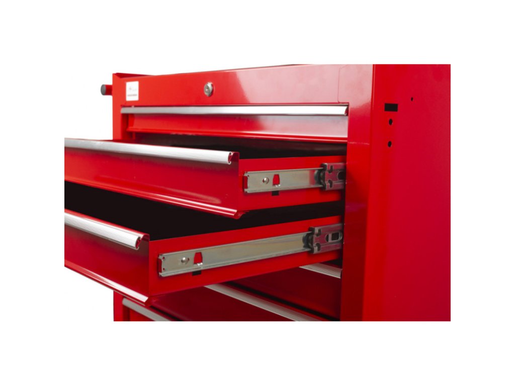7 uzamykatelných zásuvek s kuličkovými ložisky ve výsuvech pomáhá snadnému výsuvu i při maximálním zatížení zásuvek. Výsuv je osazen dorazem. Vnitřní rozměr zásuvek je 570 x 410 mm.