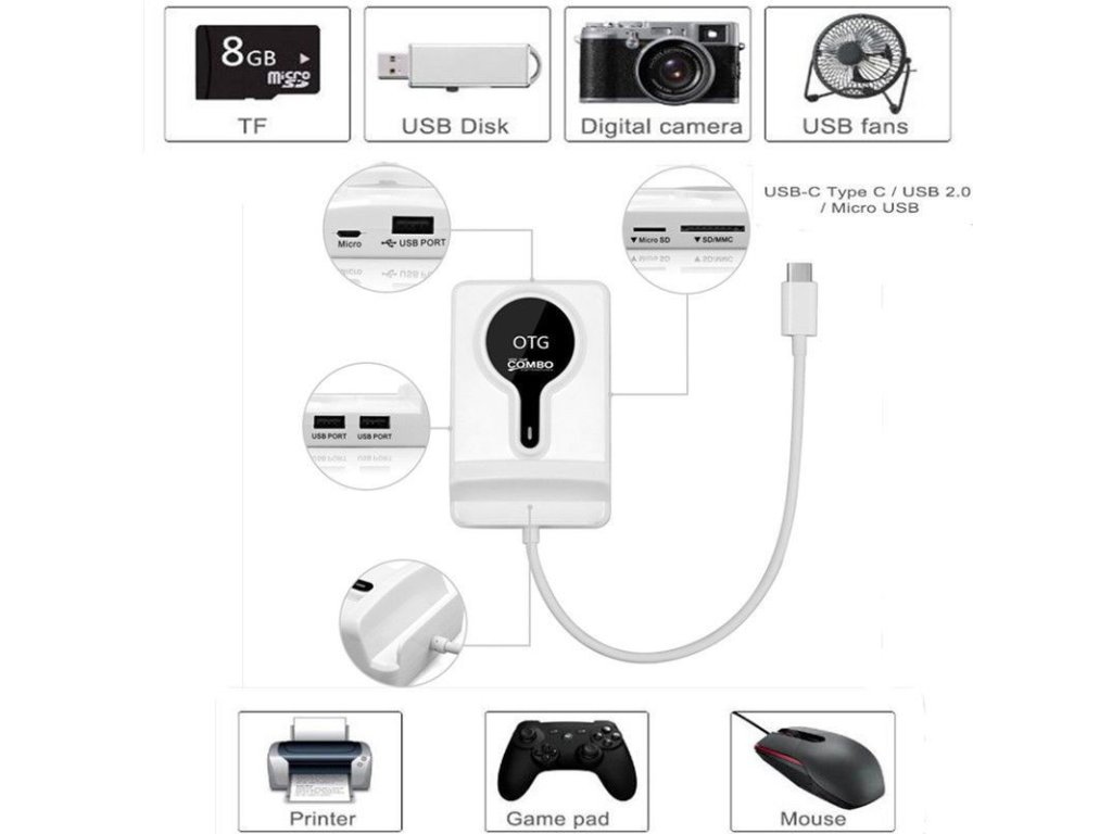 Redukce HUB / OTG držák pro USB-C USB 3 .1 s micro USB SD Micro SD