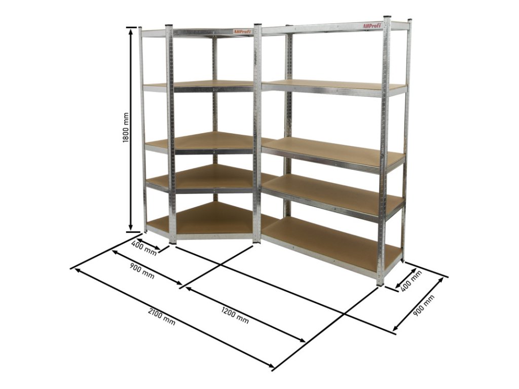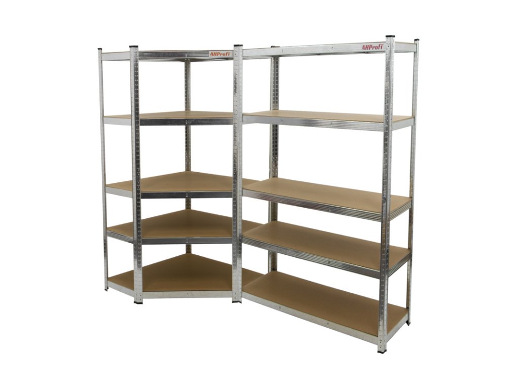 - Kompletní rohový regálový systém – 2 propojené díly