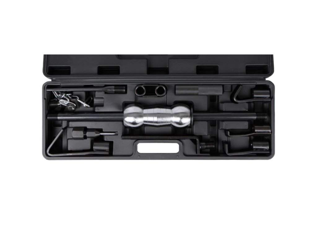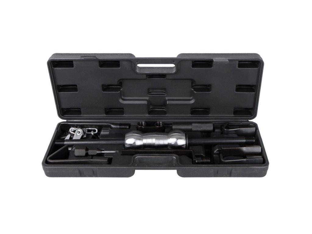 Tato sada obsahuje kluzné kladivo o délce 550 mm a široký výběr adaptérů pro různé úhly a typy poškození.