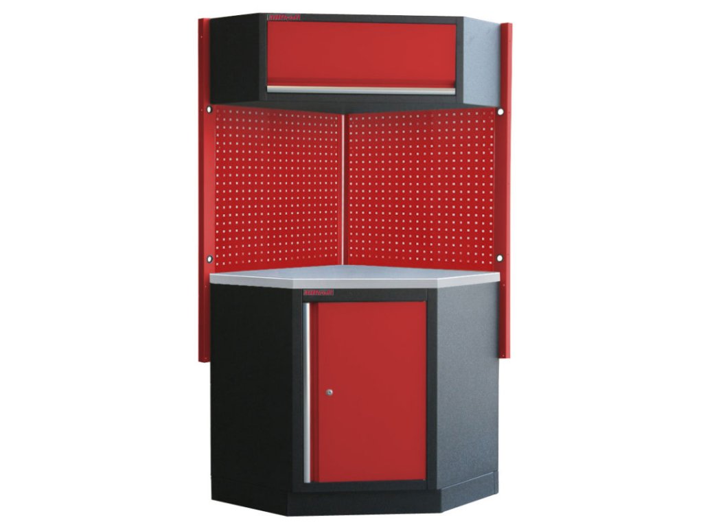 Dílenský nábytek PROFI RED s nerezovou deskou zaujme moderním a profesionálním vzhledem. Kombinace červené RAL 3031 a černé RAL 9004 barvy se bude vyjímat v každé garáži i dílně. Sestava nábytku v sobě skrývá dostatečné množství úložného prostoru pro vaše nářadí, autotechniku i dílenské vybavení. V kombinaci s bytelnou pracovní deskou získáte multifunkční stěnu, se kterou vám půjde práce od ruky ve všech směrech. Jednotlivé komponenty jsou plně konfigurovatelné, sestavu je možné dle vašich potřeb rozšířit o další skříně, regály i ponk.Sestava nábytku RTGS1302S