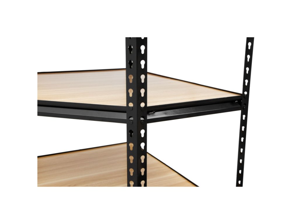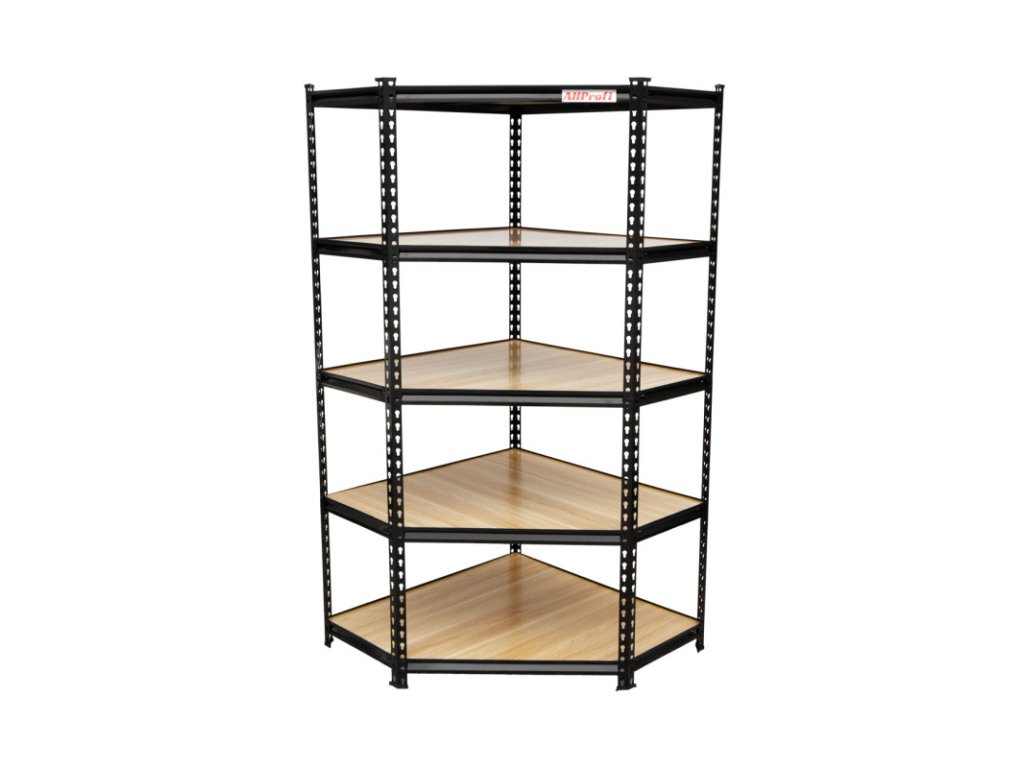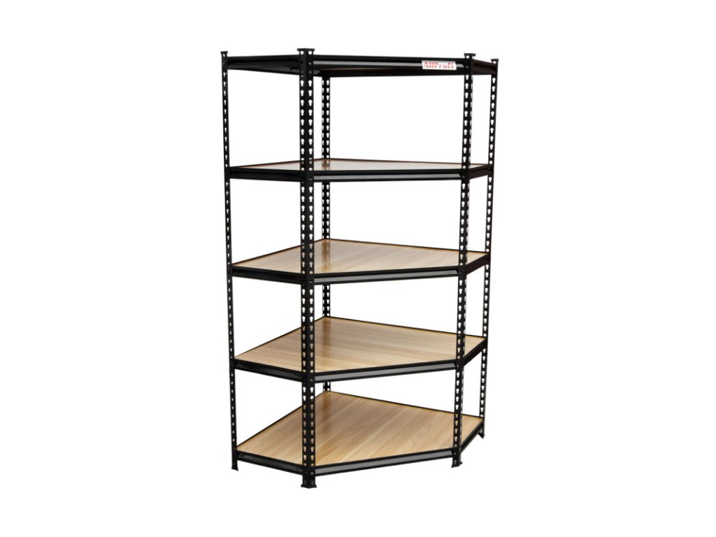 Rohový policový regál je konstruován z kvalitní oceli pro maximální odolnost a stabilitu. Konstrukce z 0,8 mm oceli má oproti běžným regálům z 0,6 mm oceli vysokou nosnost až 265 kg na polici. Police jsou výškově nastavitelné a vyrobeny z pevných MDF desek s hladkým povrchem. Součástí regálu je 5 polic.