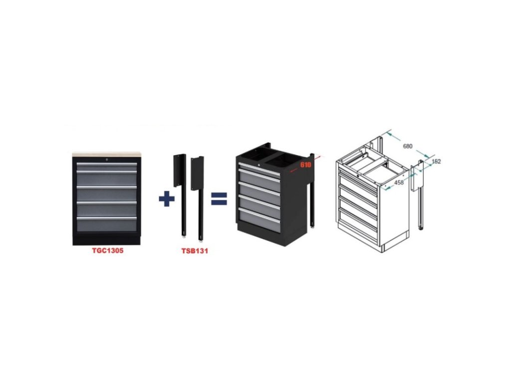 Rozšiřte své možnosti díky prodlužovacím sloupkům TSB131, které umožňují zvětšit hloubku vaší dílenské sestavy.