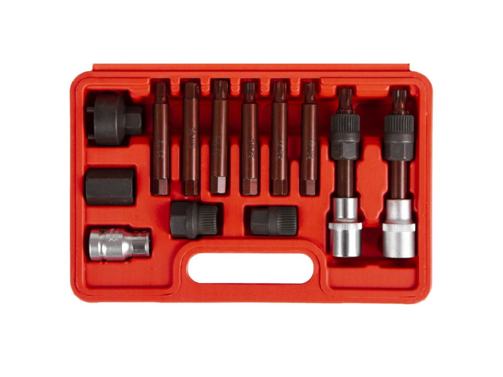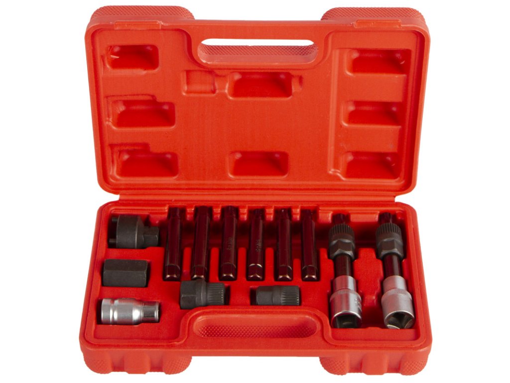 Sada 13 ks klíčů, adaptérů a hlavic pro montáž a demontáž alternátorů: