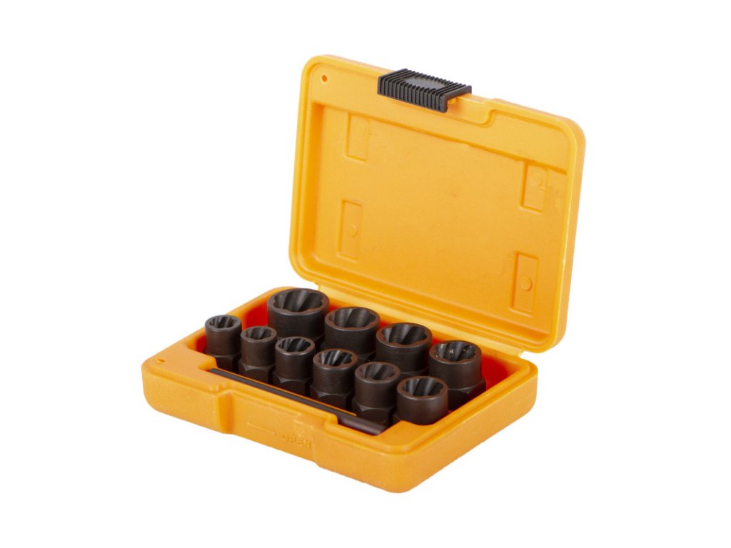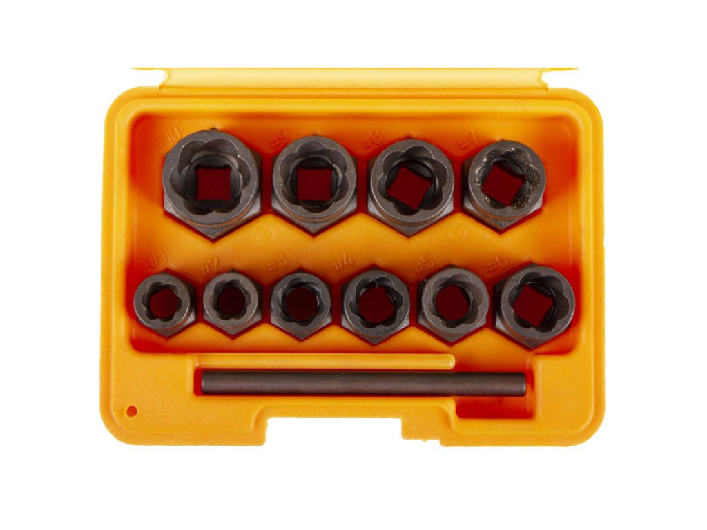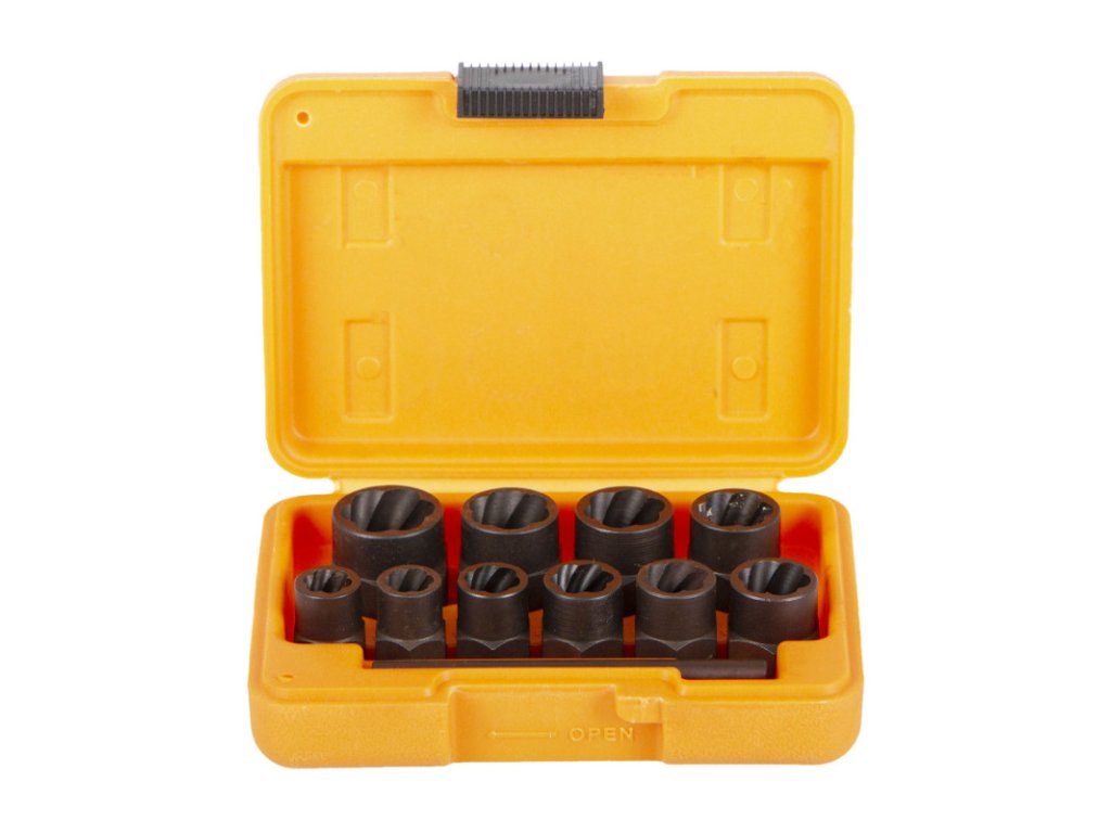 Sada 11 ks speciálních nástrčných hlavic 3/8" na povolení poškozených šroubů a matic.