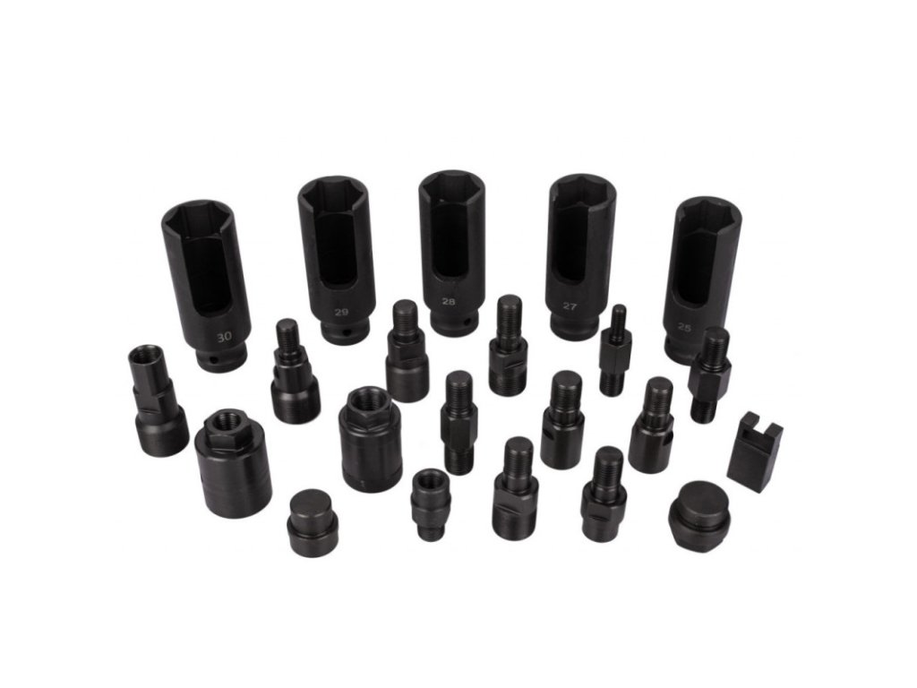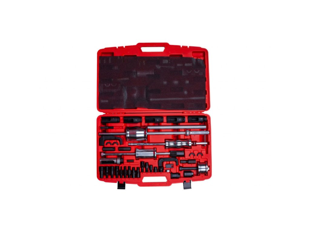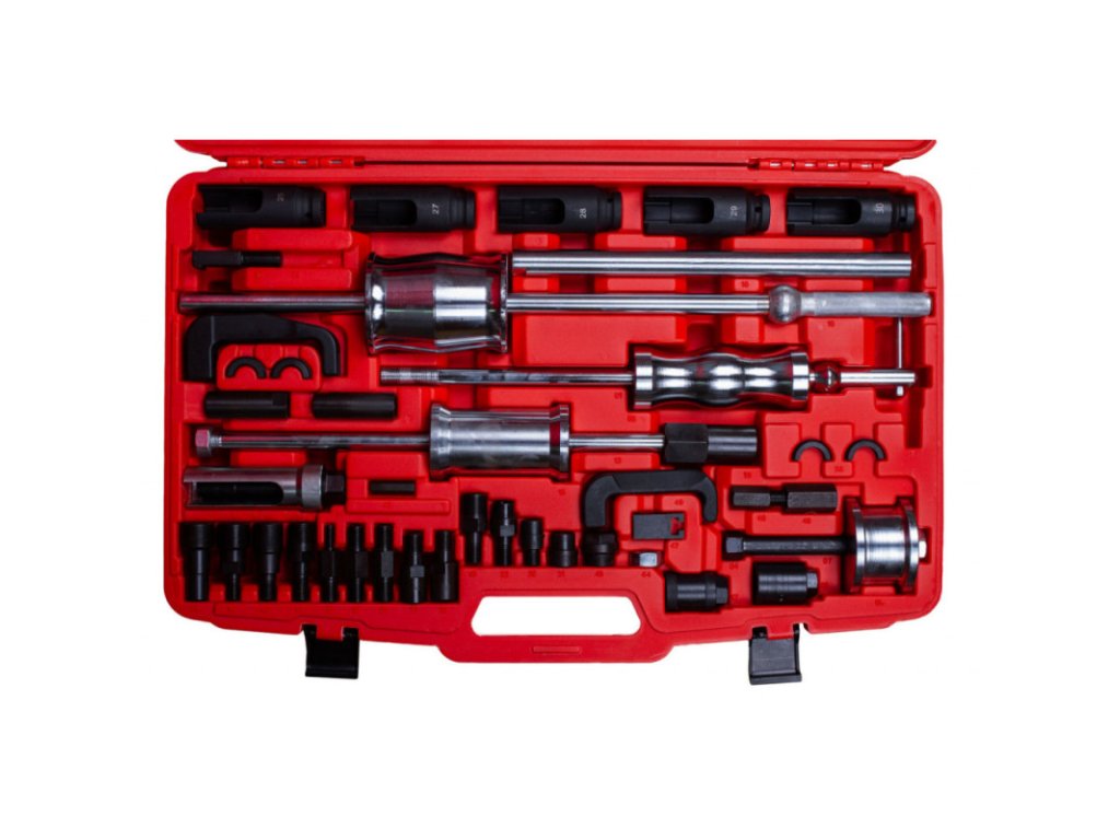 Balení obsahuje tři reverzní kladiva, klíče na vstřikovače, vytahovací vidlice a řadu adaptérů, díky tomu lze sadu použít na nejrůznější běžné vstřikovače.