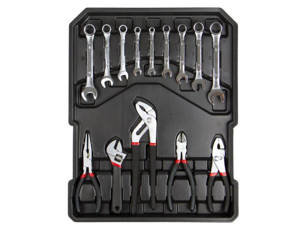 Nářadí je uloženo ve 4 plastových platech. To zaručuje perfektní přehled a usnadňuje orientaci.