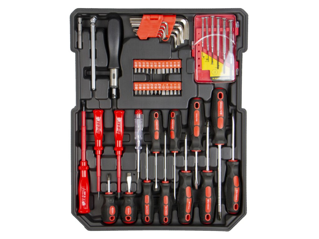 V kufru naleznete celkem 428 ks nářadí a spojovacího materiálu.