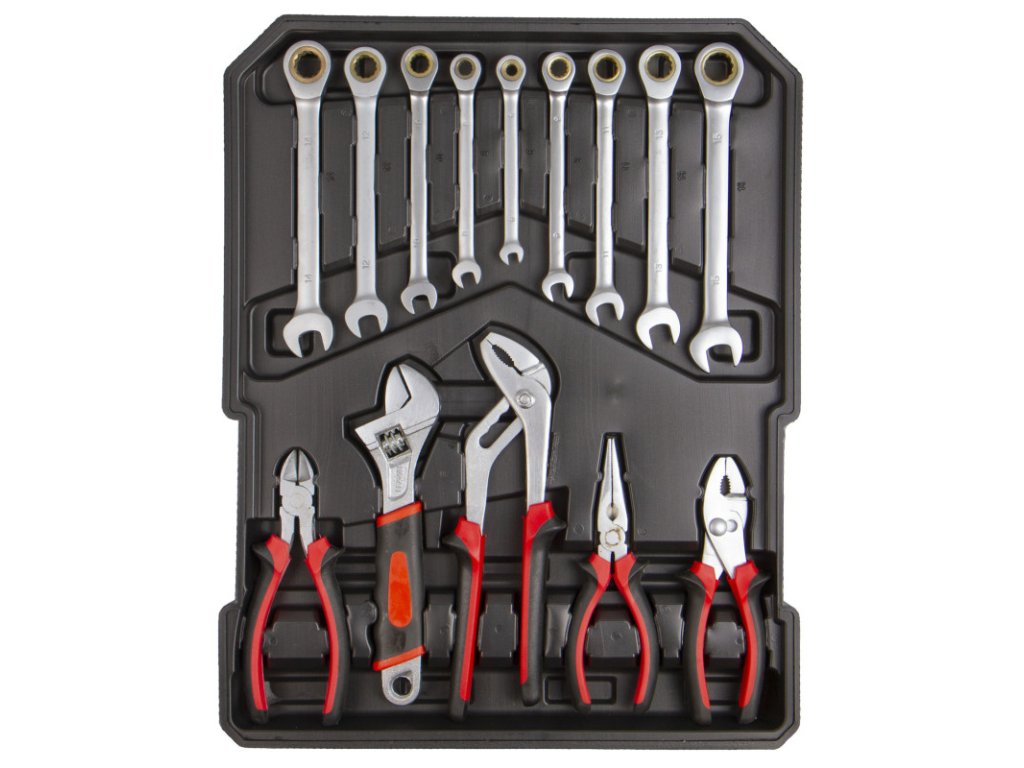 Nářadí je uloženo ve 4 plastových platech. To zaručuje perfektní přehled a usnadňuje orientaci.