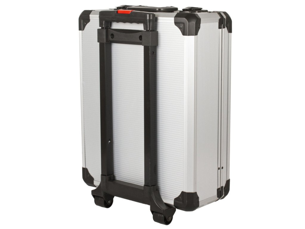 - Kufřík je vybaven teleskopickým úchytem a kolečky, díky kterým je manipulace se sadou velice snadná.