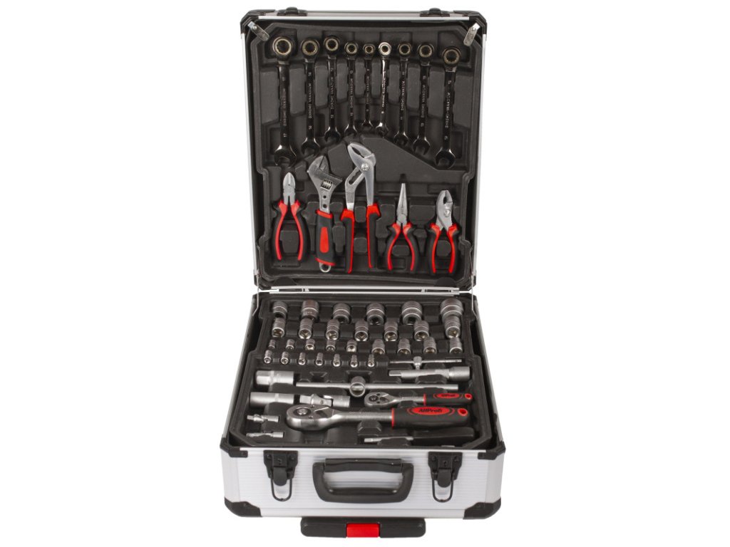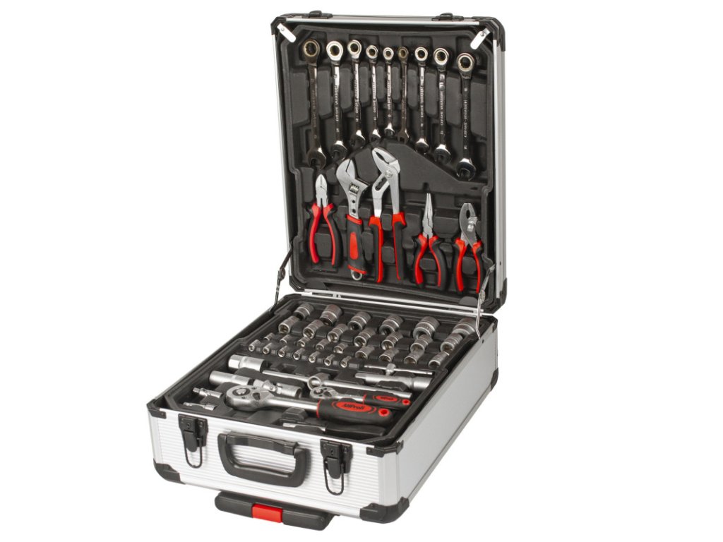 - Praktický hliníkový kufr se 186 díly kvalitního ručního nářadí.