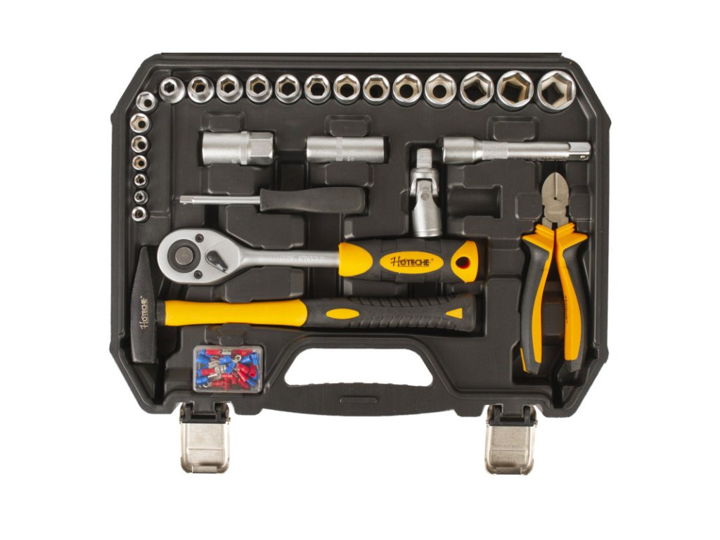 Sada základního nářadí s golou a nástrčnými klíči 1/2" a 1/4" od značky Hoteche by neměla chybět v žádné domácnosti.