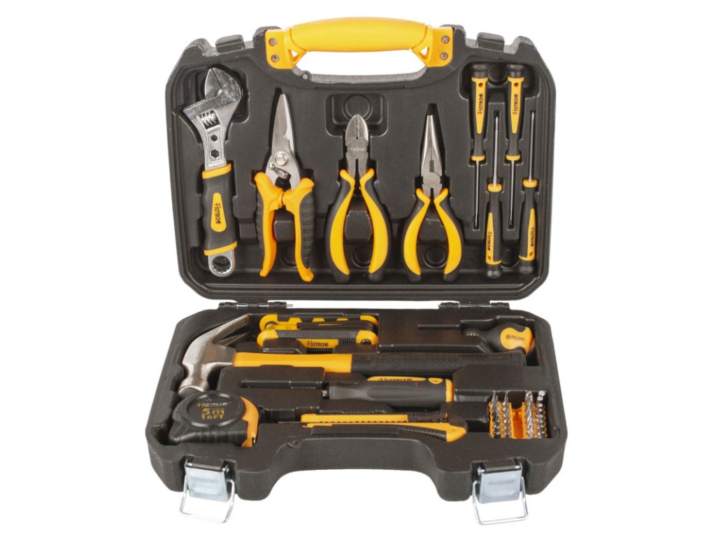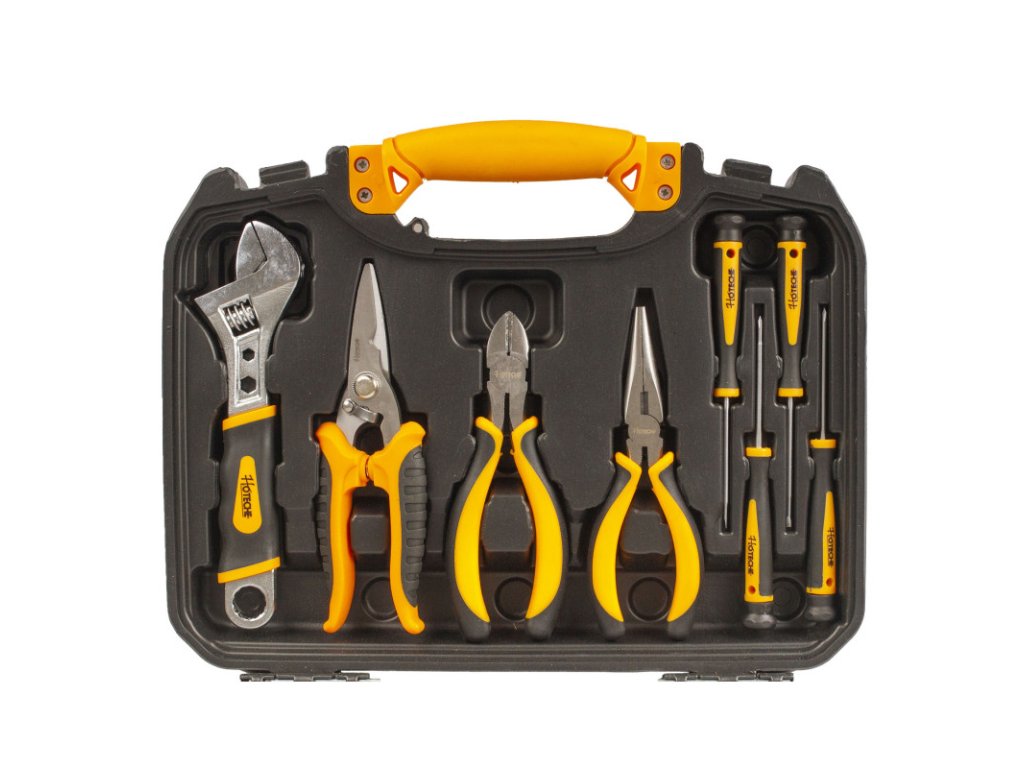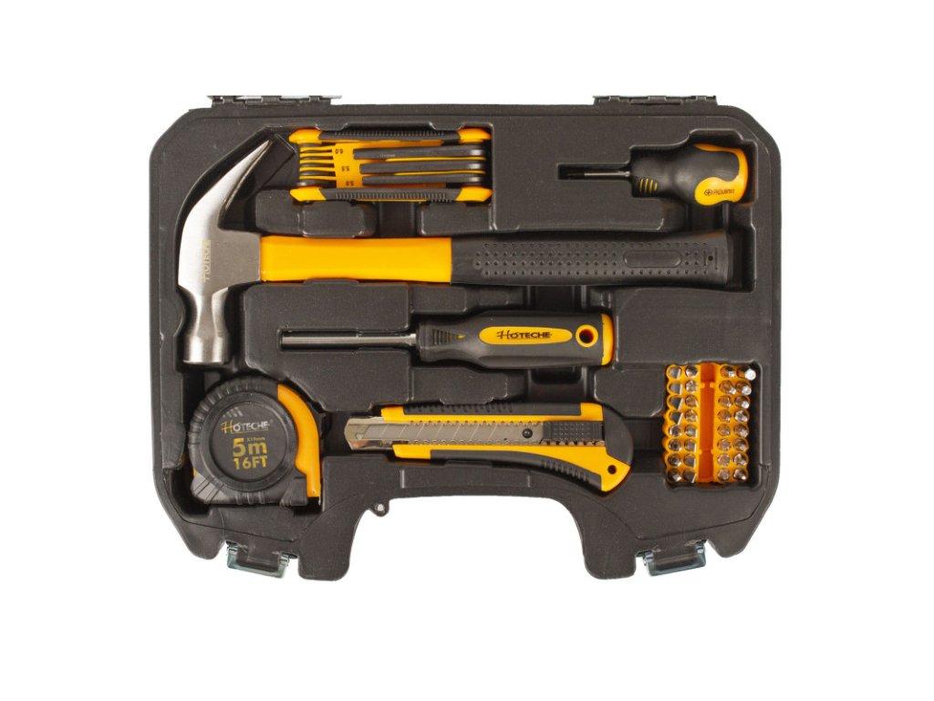 Sada základního nářadí s v plastovém kufru od značky Hoteche by neměla chybět v žádné domácnosti.
