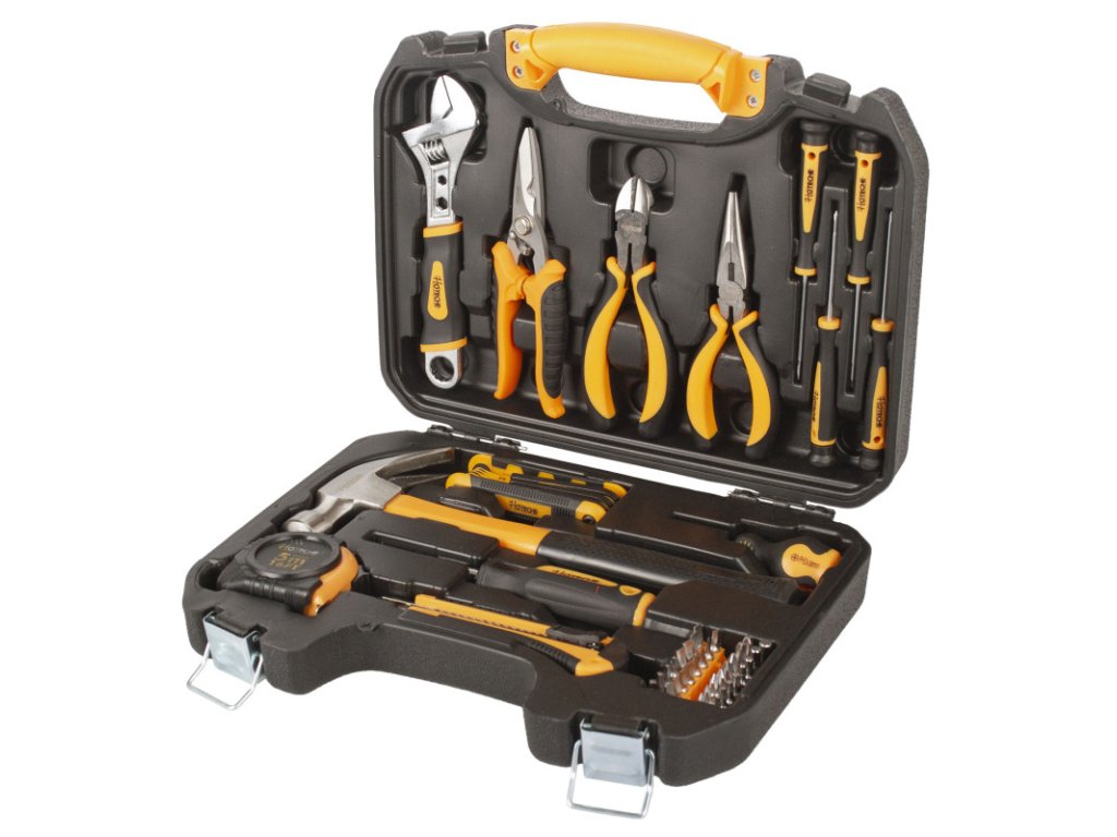 V sadě naleznete veškeré základní nářadí např. kleště, šroubováky, sadu bitů nebo kladivo, které můžete potřebovat v domácnosti při běžných údržbách nebo opravách.