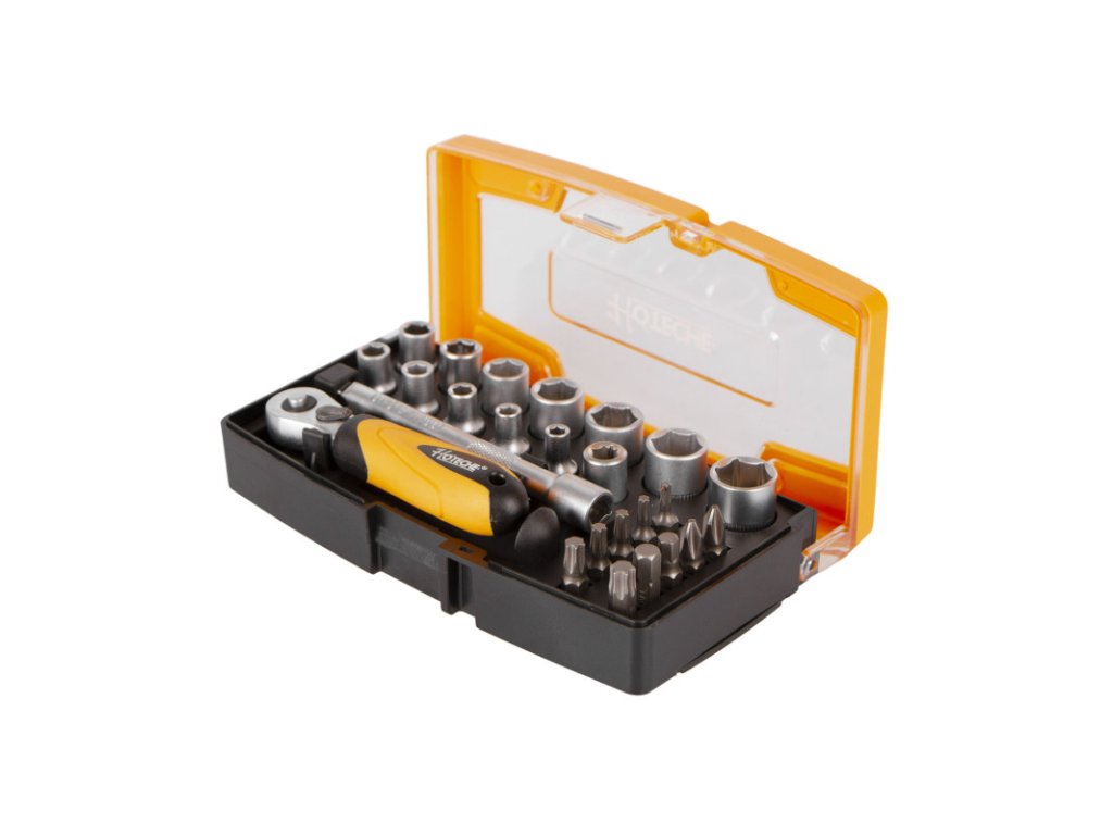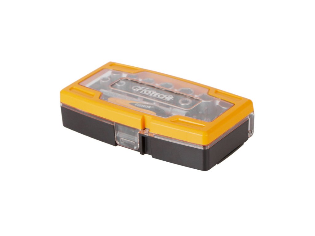 Sada bitů a nástrčných klíčů 1/4" v plastovém boxu od značky Hoteche.